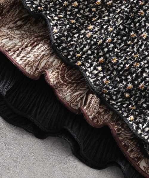 レトロな総柄or無地ブラックの楊柳マーメイド
