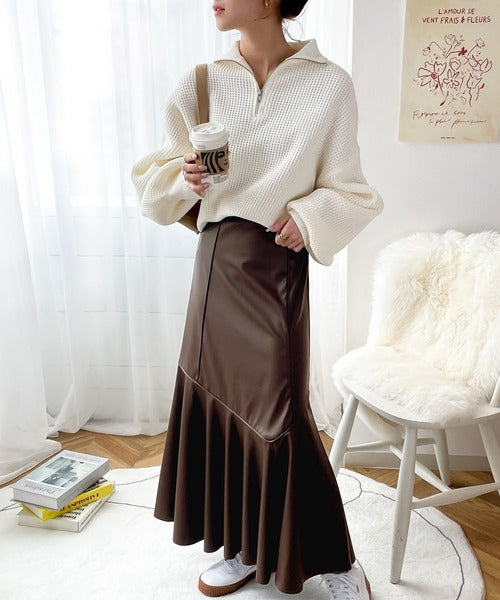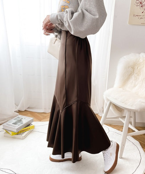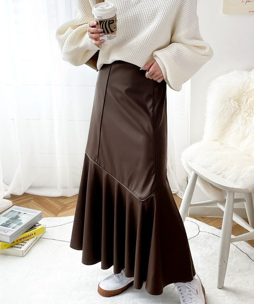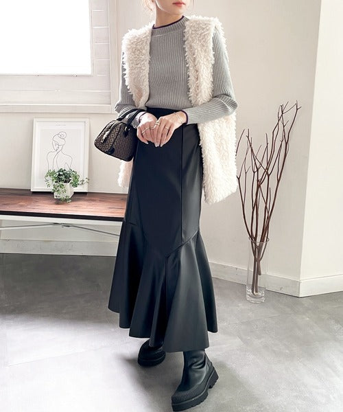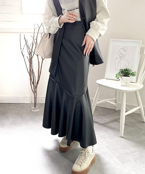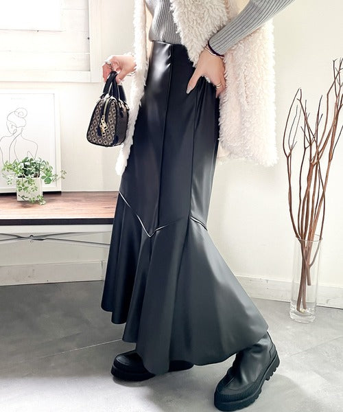 愛用率100%。切替えフェイクレザーマーメイドスカート ce1015035