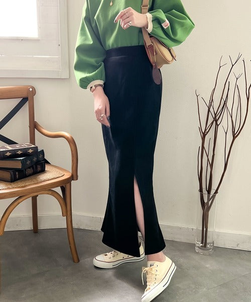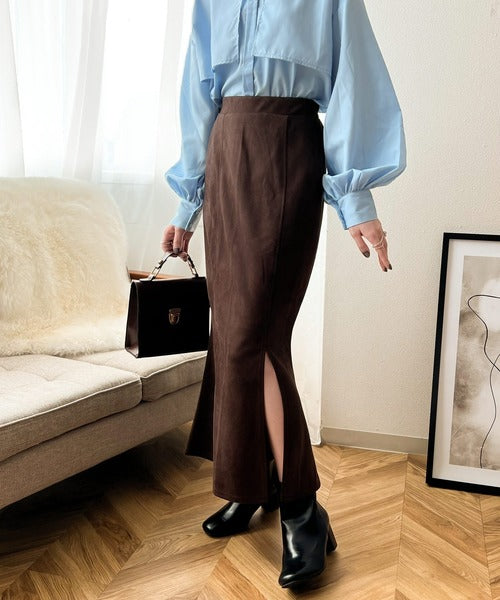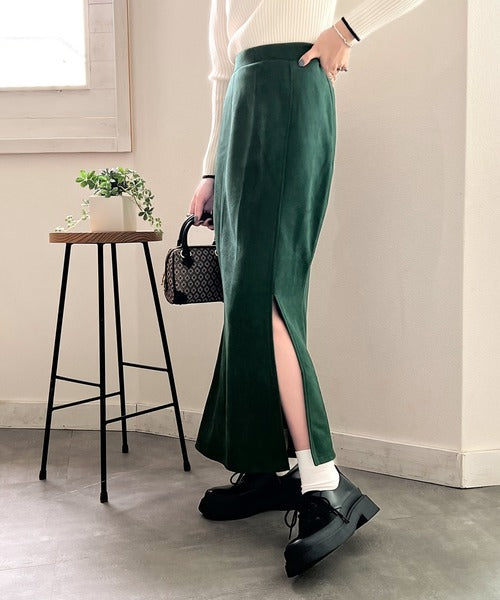 秋の鉄板Item。スリット入りスエードマーメイドスカート ce1015044