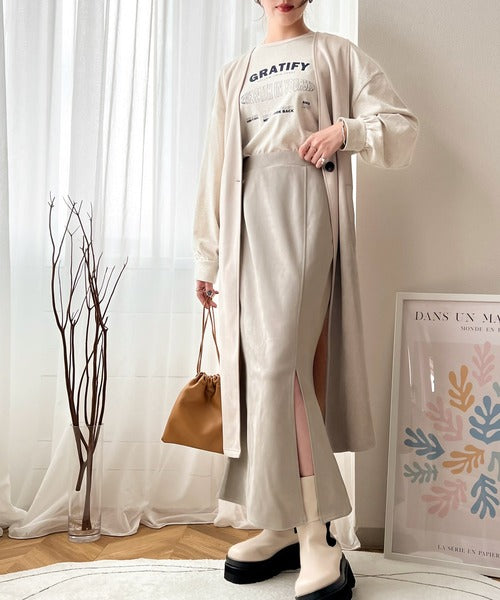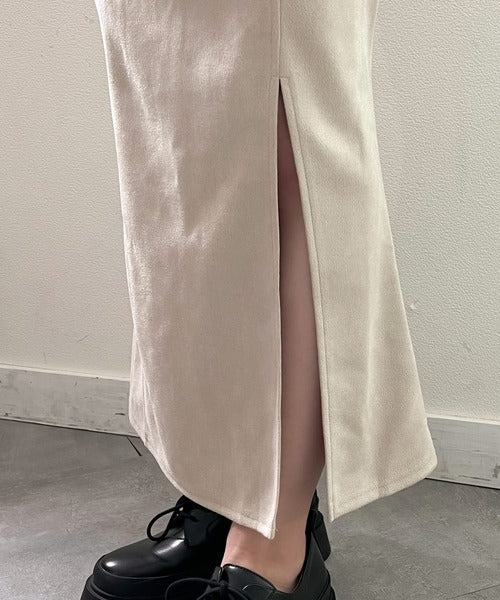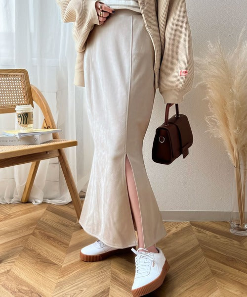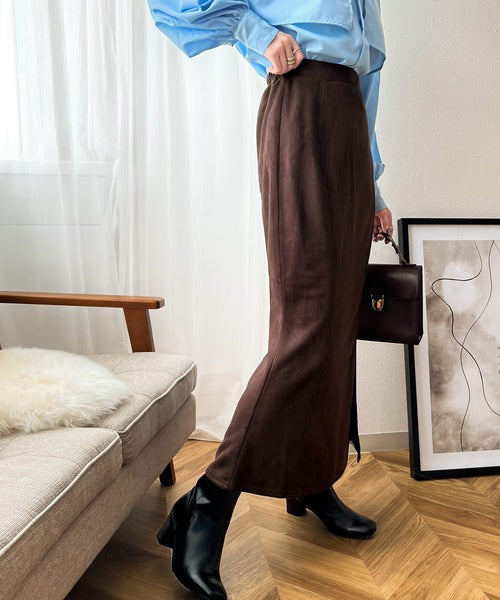 柔らかいスエード地美脚マーメイドスカート。