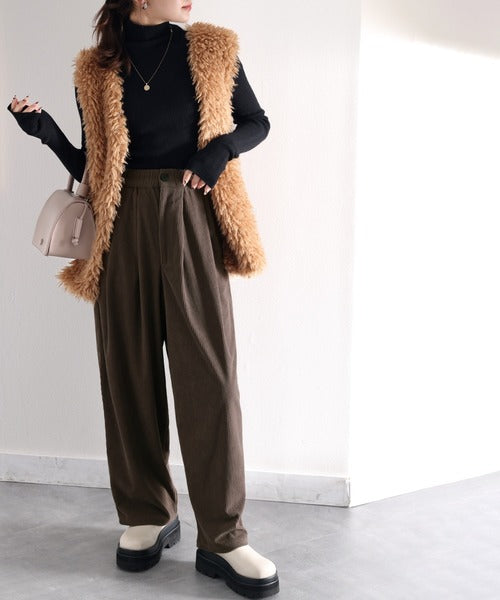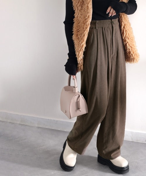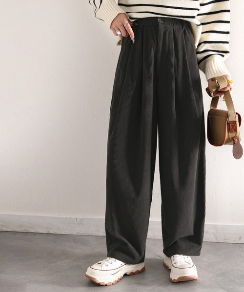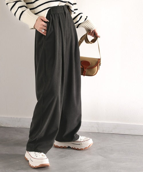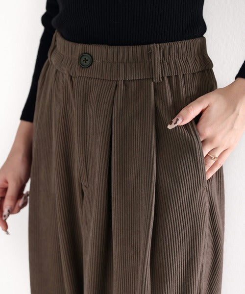 ぬくもりのあるコーデュロイ素材のサーカスパンツ。