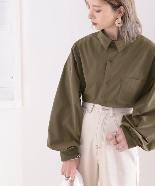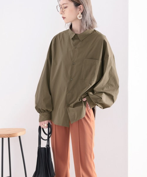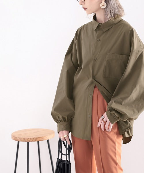 落ち感のあるドロップショルダーデザインがおしゃれな長袖シャツ。