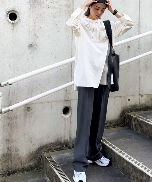 1枚でもインしてもOK!抜き襟にするとさらにこなれ感がアップ。