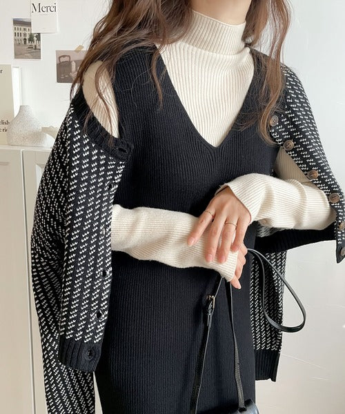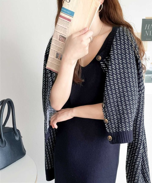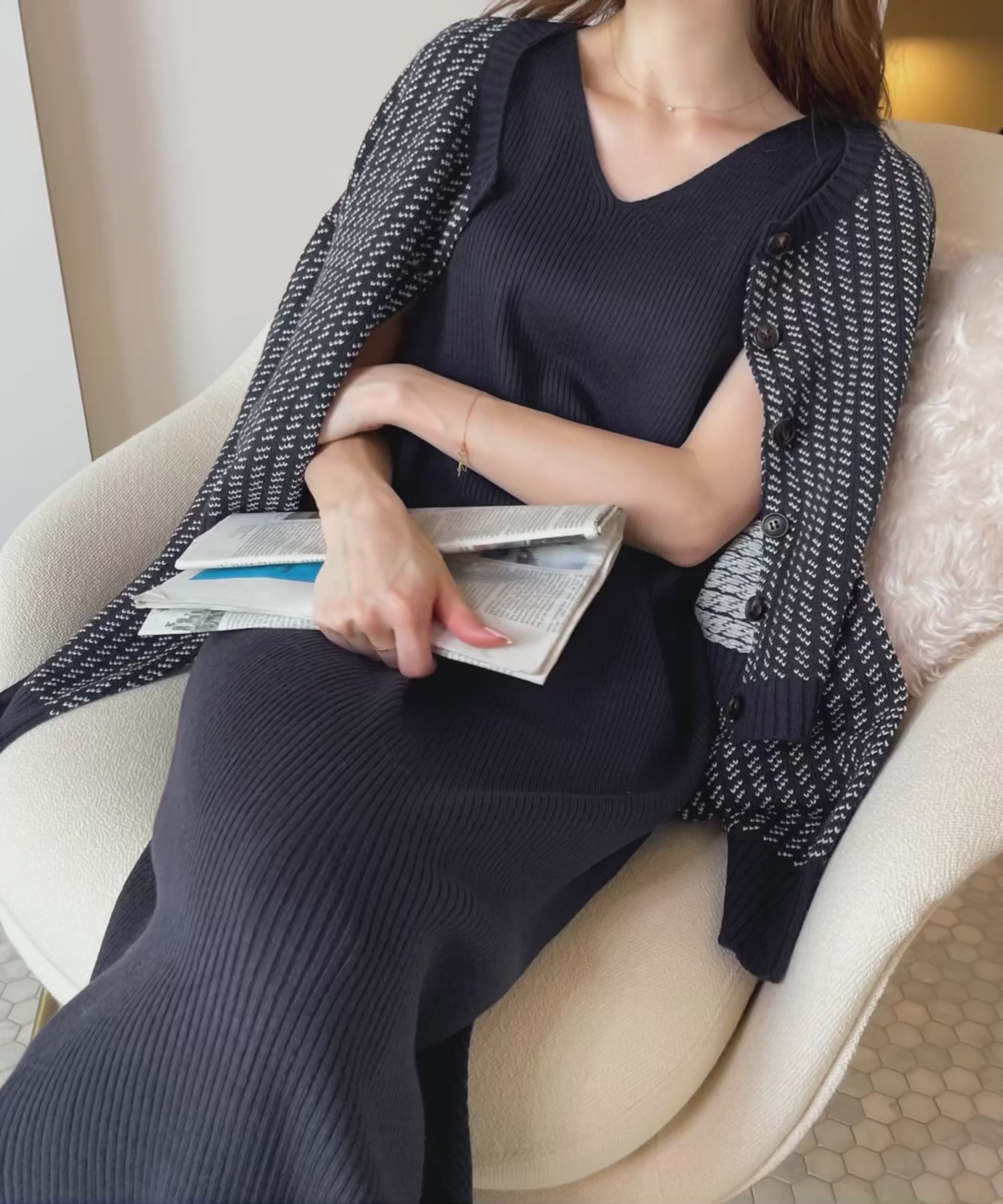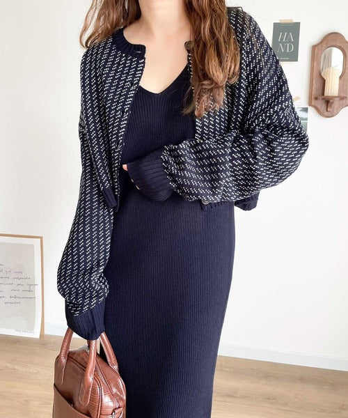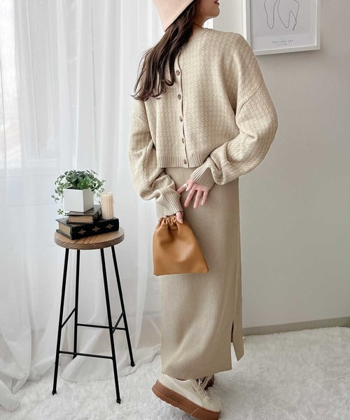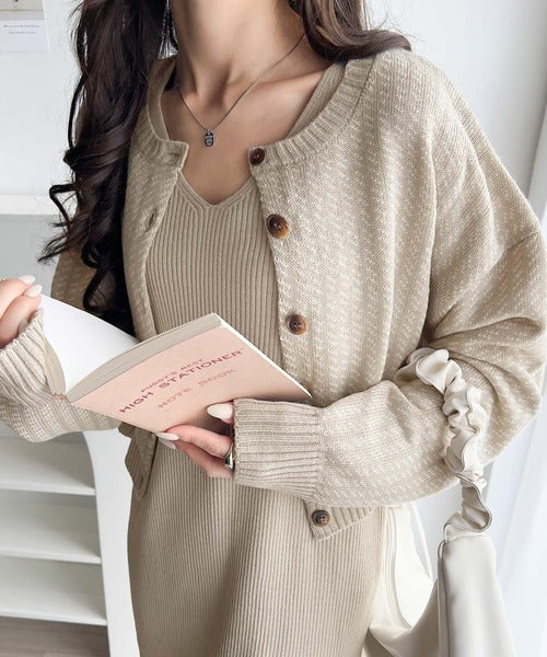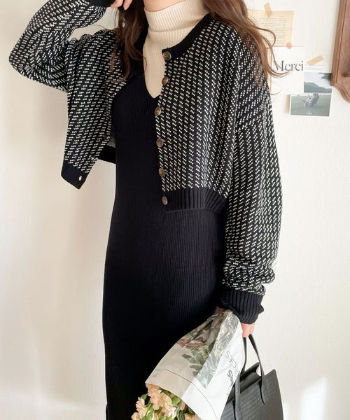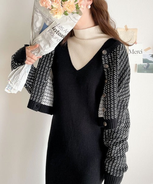 お出かけシーンに♪ジャガードニットカーディガンセットアップワンピース ce1020050