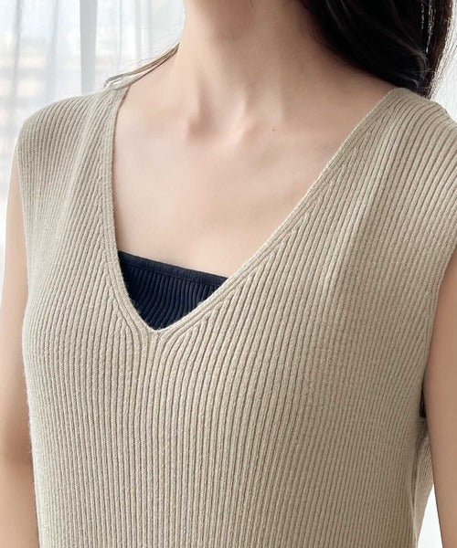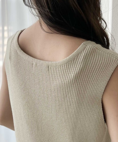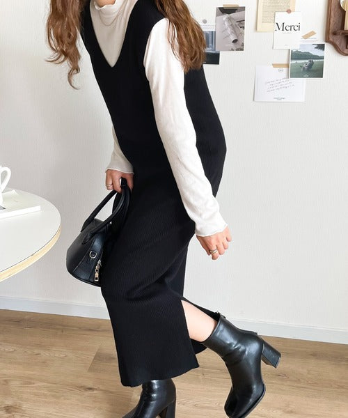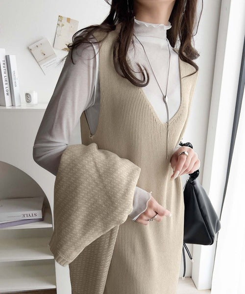 シンプルなノースリーブワンピの綺麗めニットアップ。