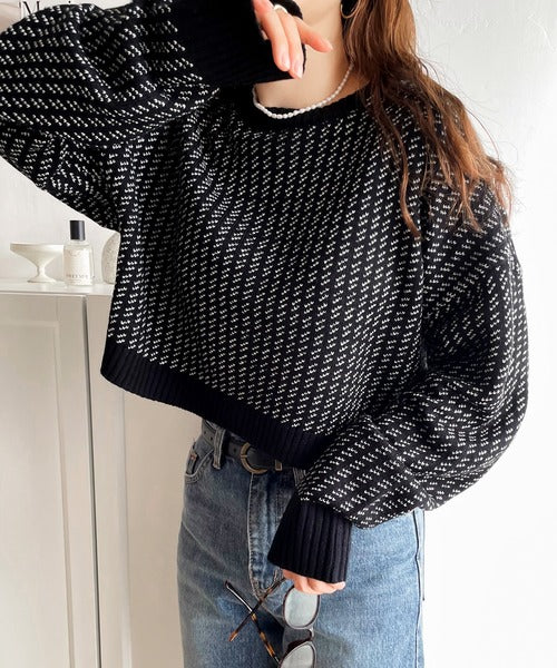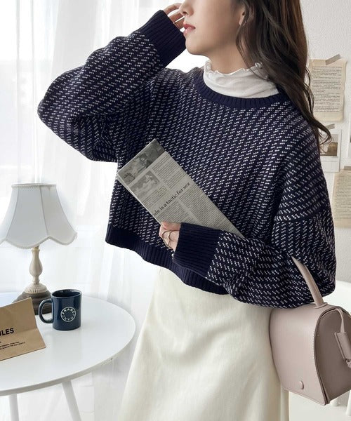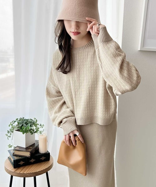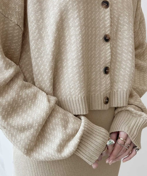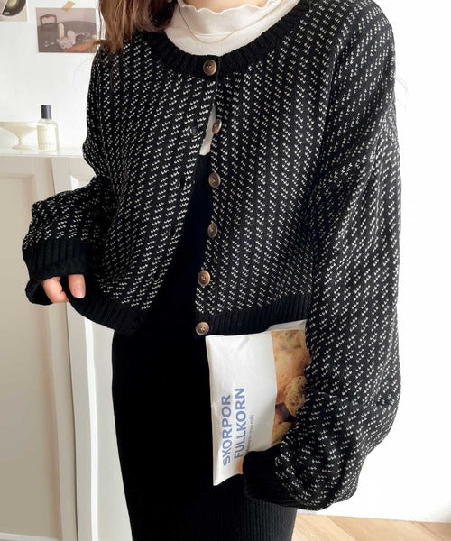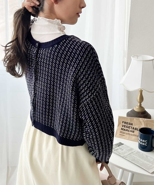 前後2wayでも使える、クロップド丈のジャガードカーディガンと