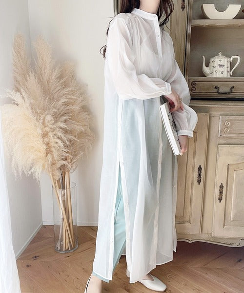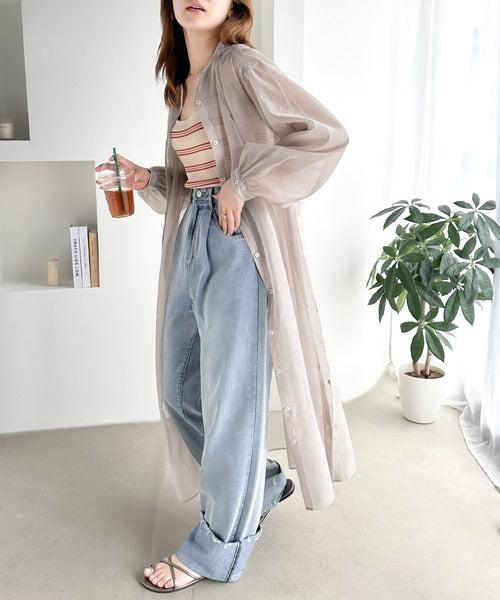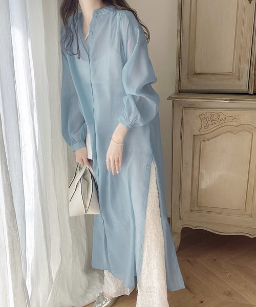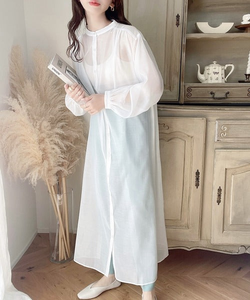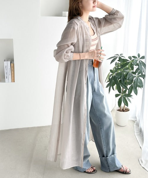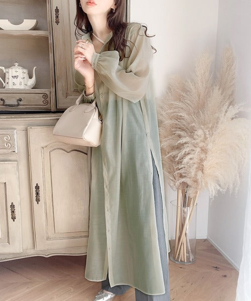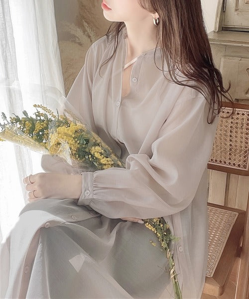 ゆったりとした涼しげなシアーワンピースは春夏に重宝するアイテム。