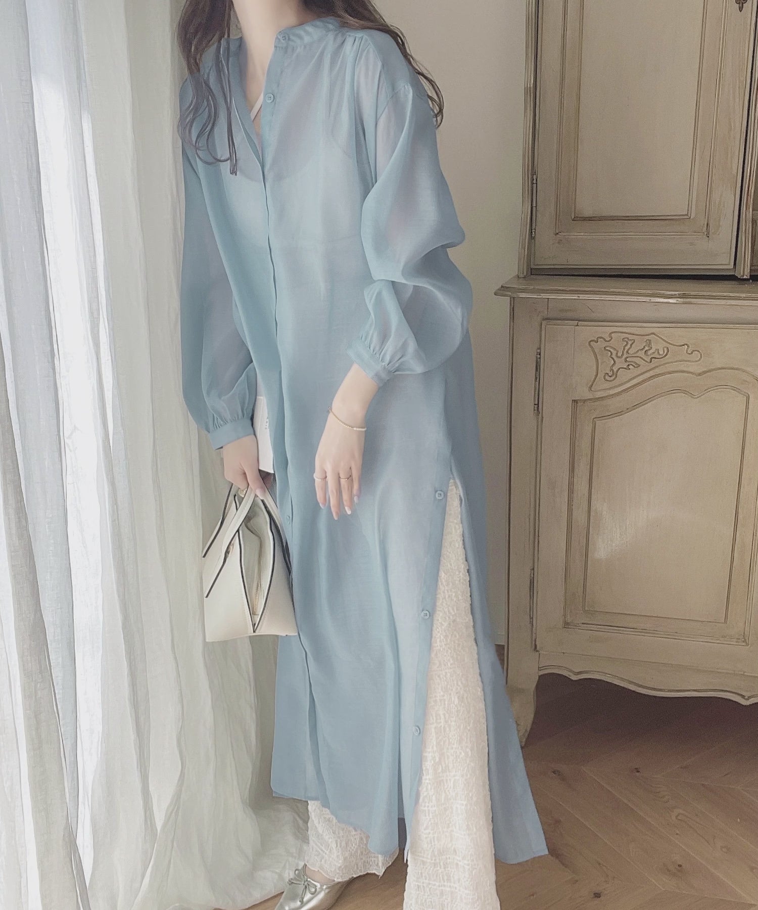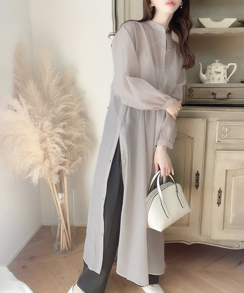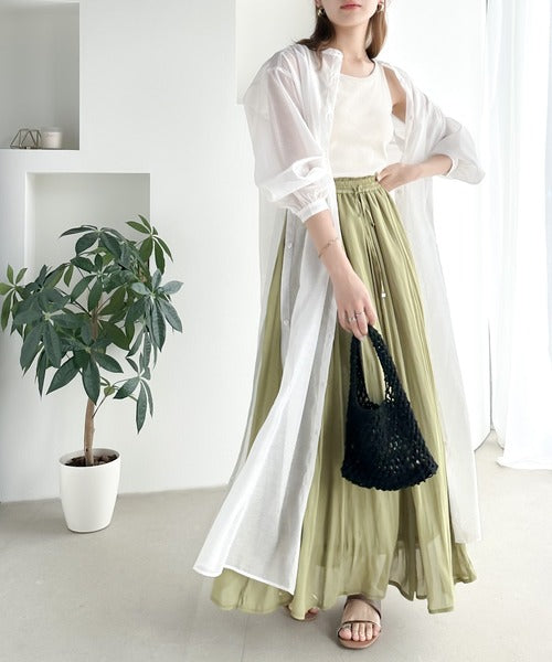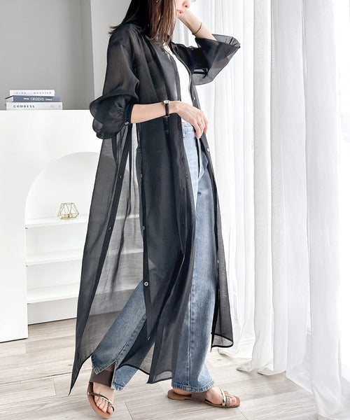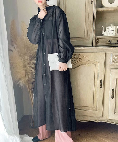 上品見えするロング丈のシアーワンピースは春夏に大活躍のアイテム!