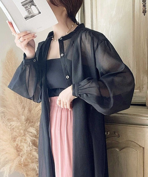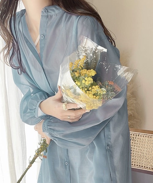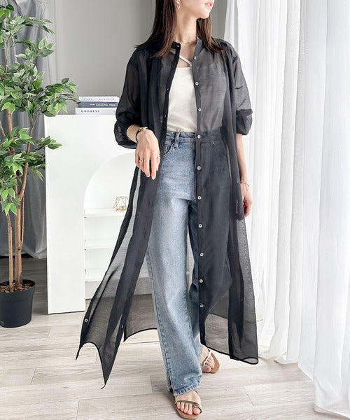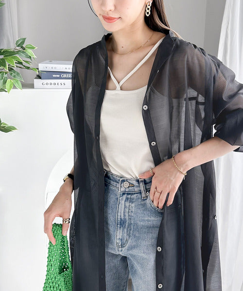 トレンドのシアー素材でこなれた雰囲気を演出します。