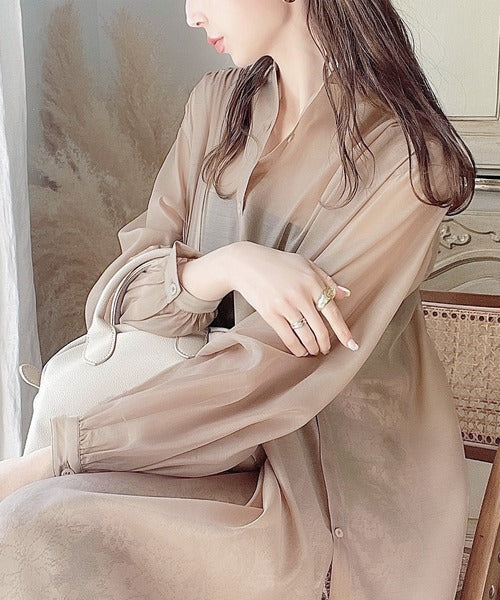 程良い透け感と光沢が上品見え抜群のシアーワンピースは