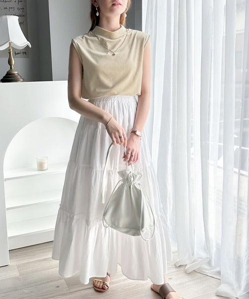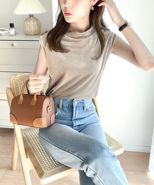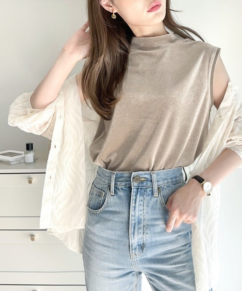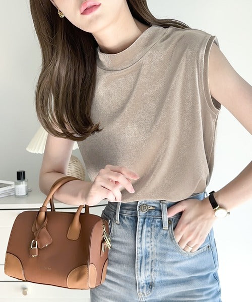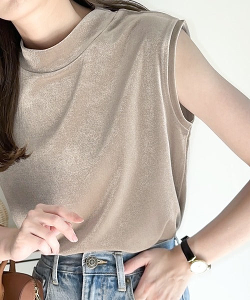 モックネックにノースリーブデザインでシンプルながらも様になる1枚。
