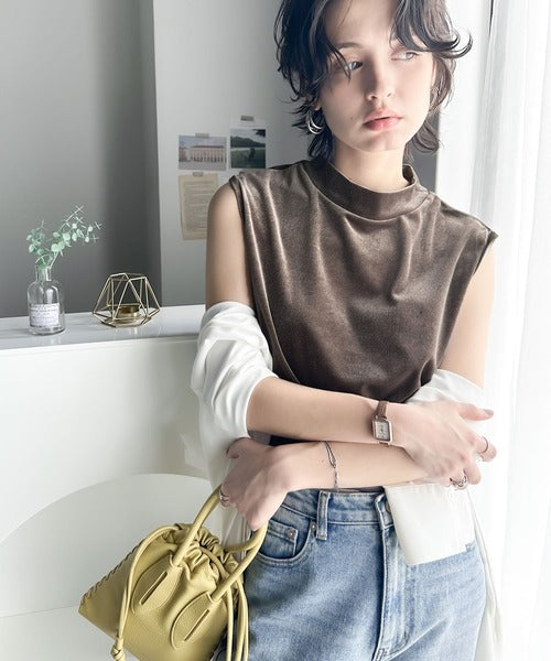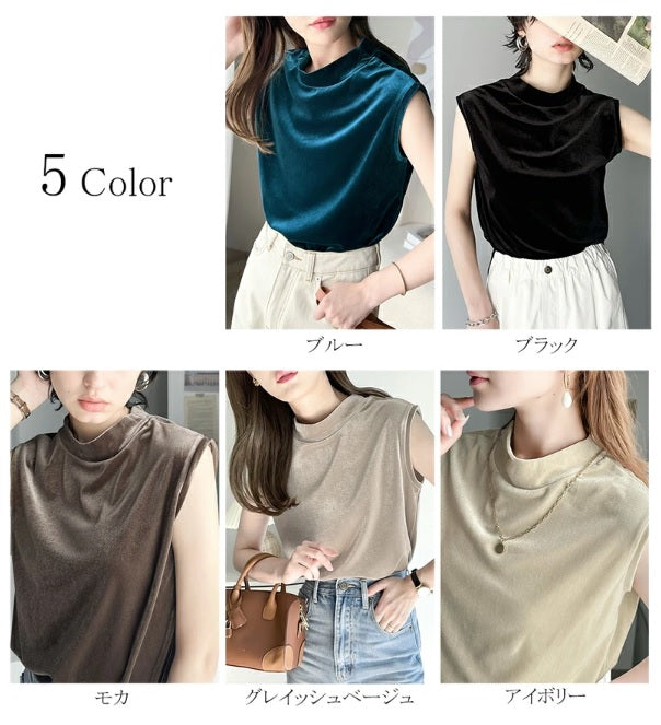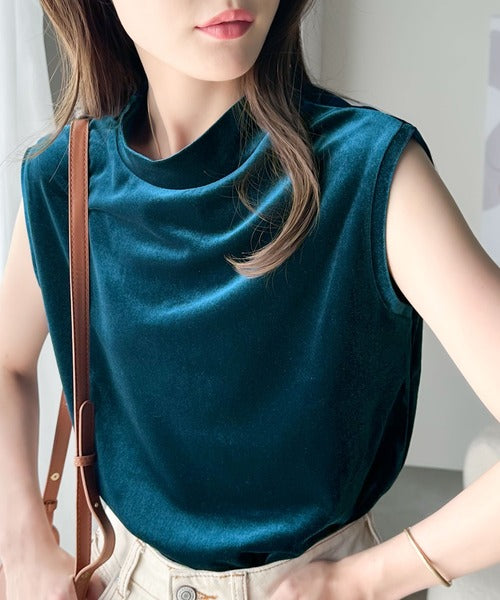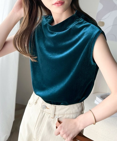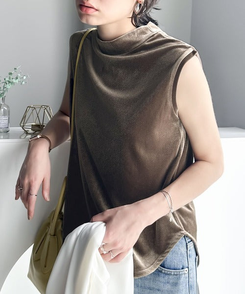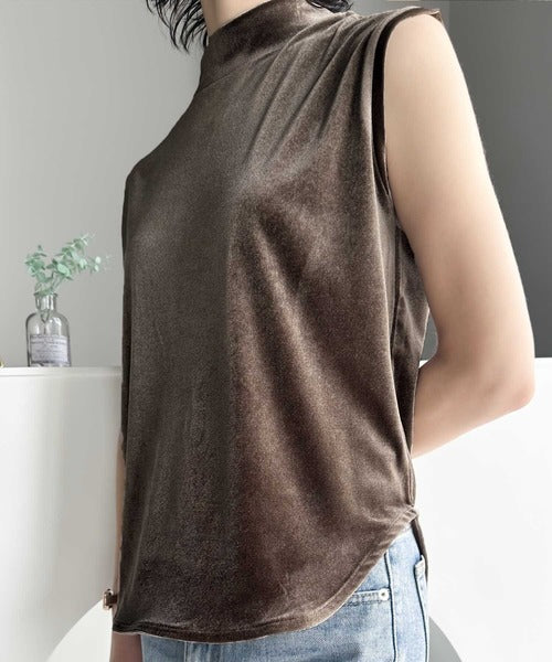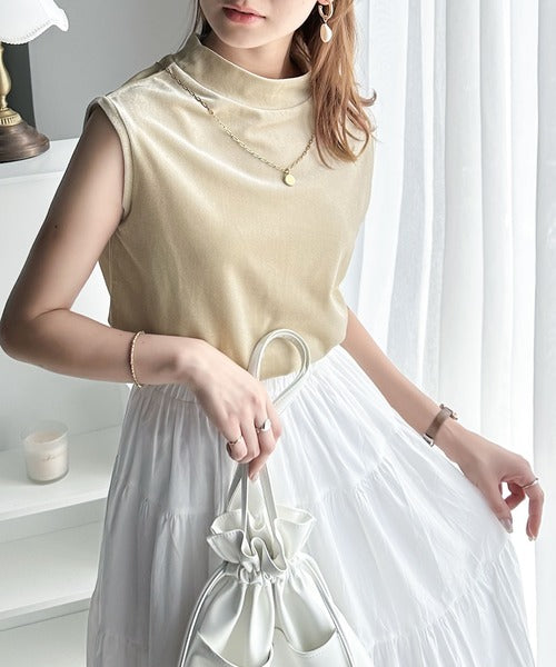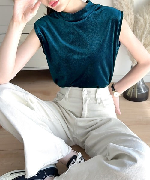 即、大人レディ。ベロアモックネックノースリーブ ce1020096