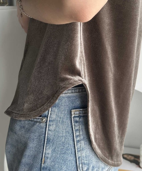 上品な光沢感とマットな質感が特徴のサマーベロアトップス。