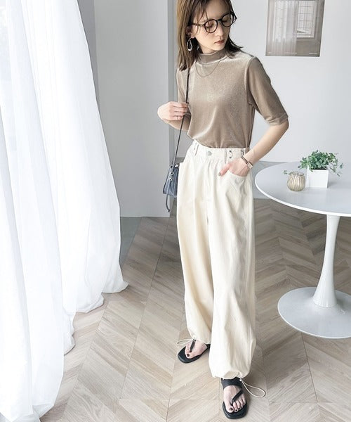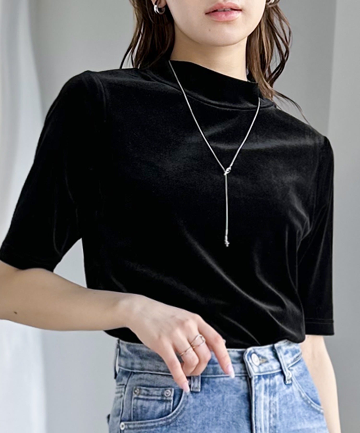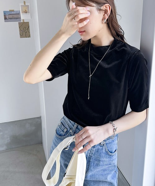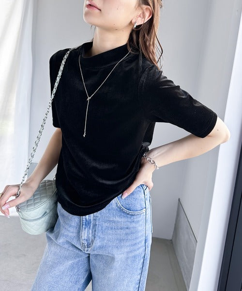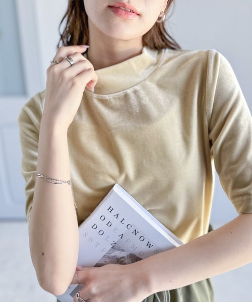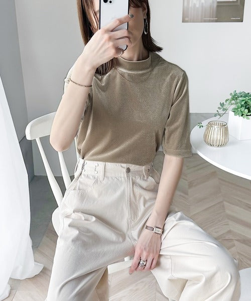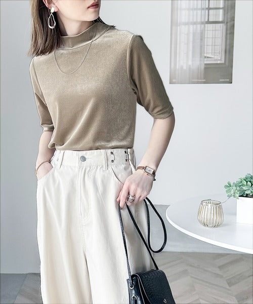 大人のサマーベロア。半袖モックネックトップス ce1020098