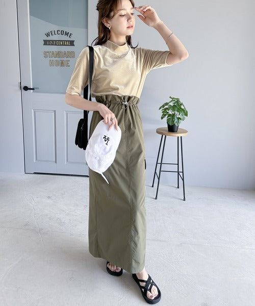 上品な光沢と滑らかな素材で、これ1枚でこなれた大人レディな印象に◎