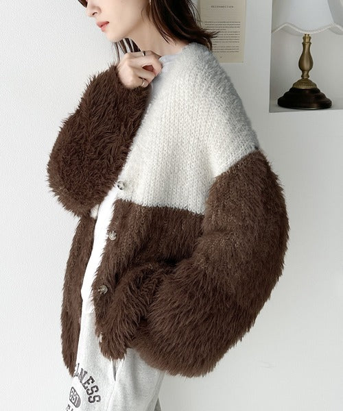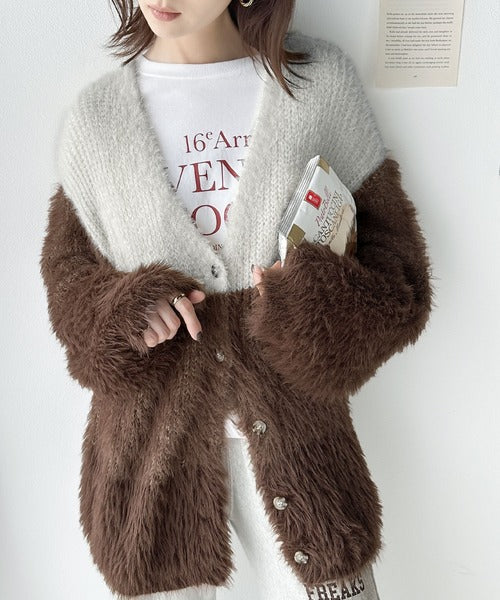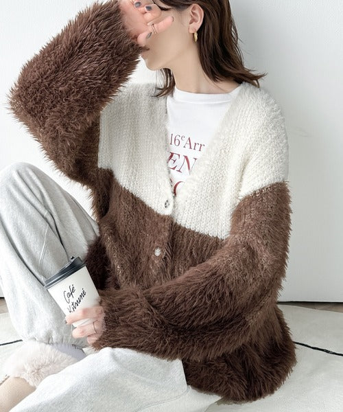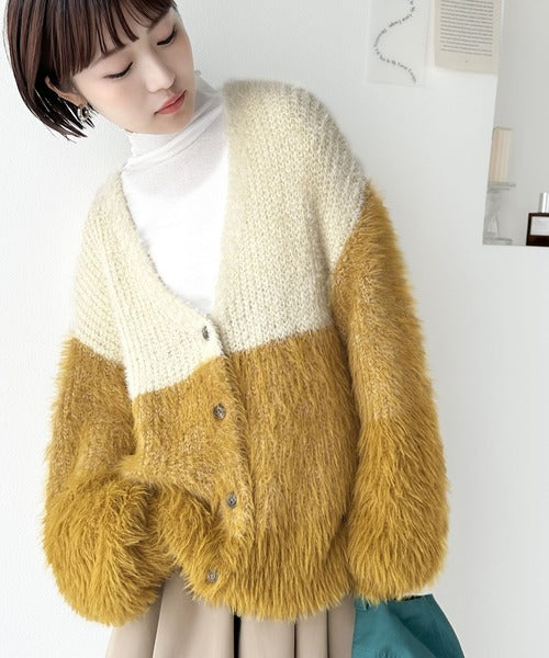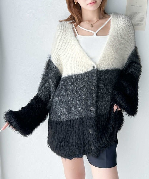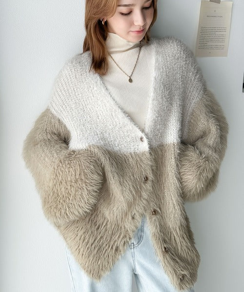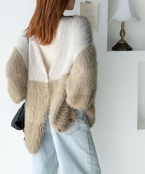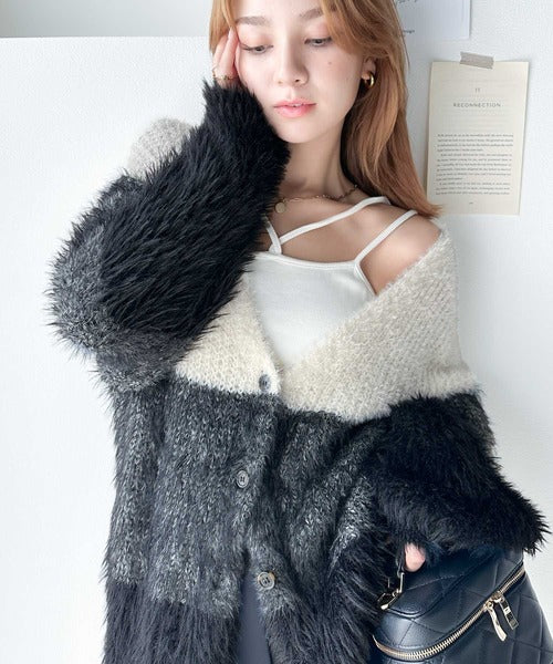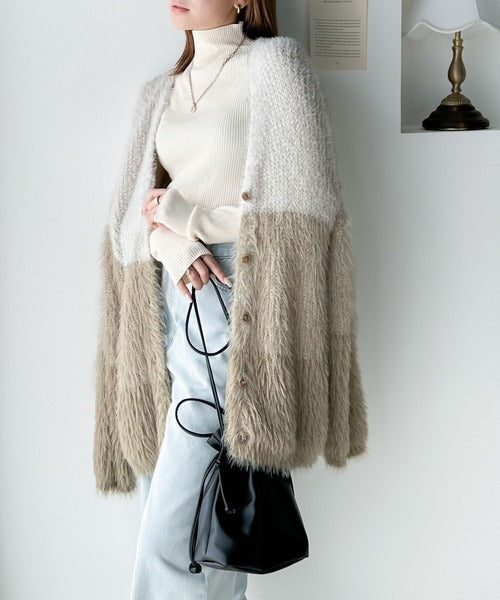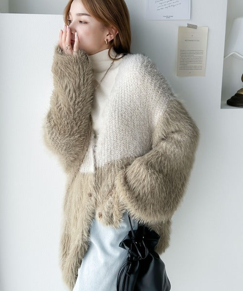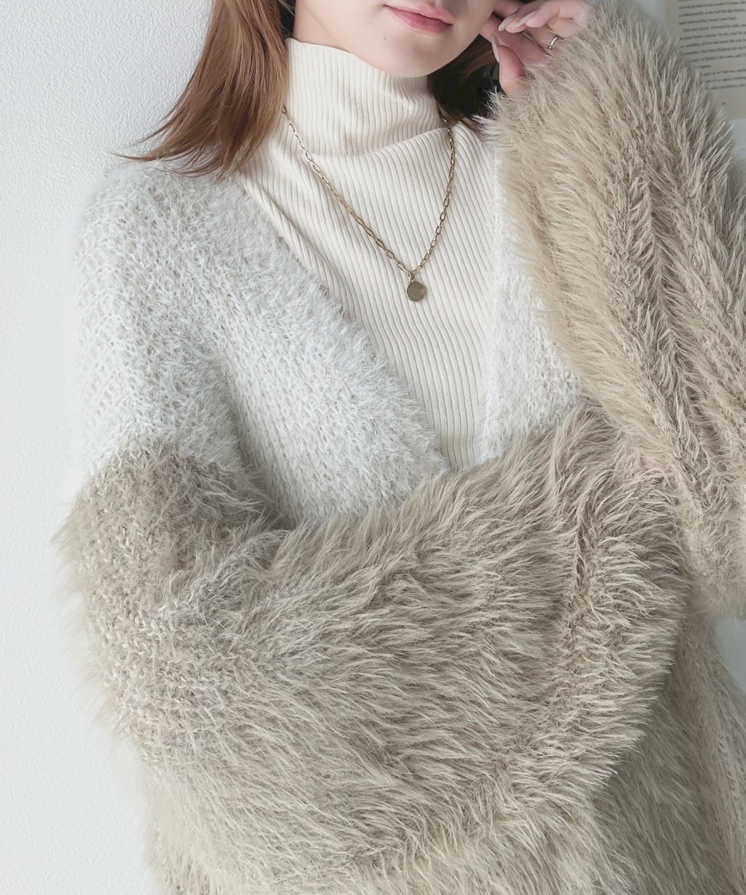 リッチなシャギーで視線を独占。2wayシャギーグラデーション配色カーデ ce1020117