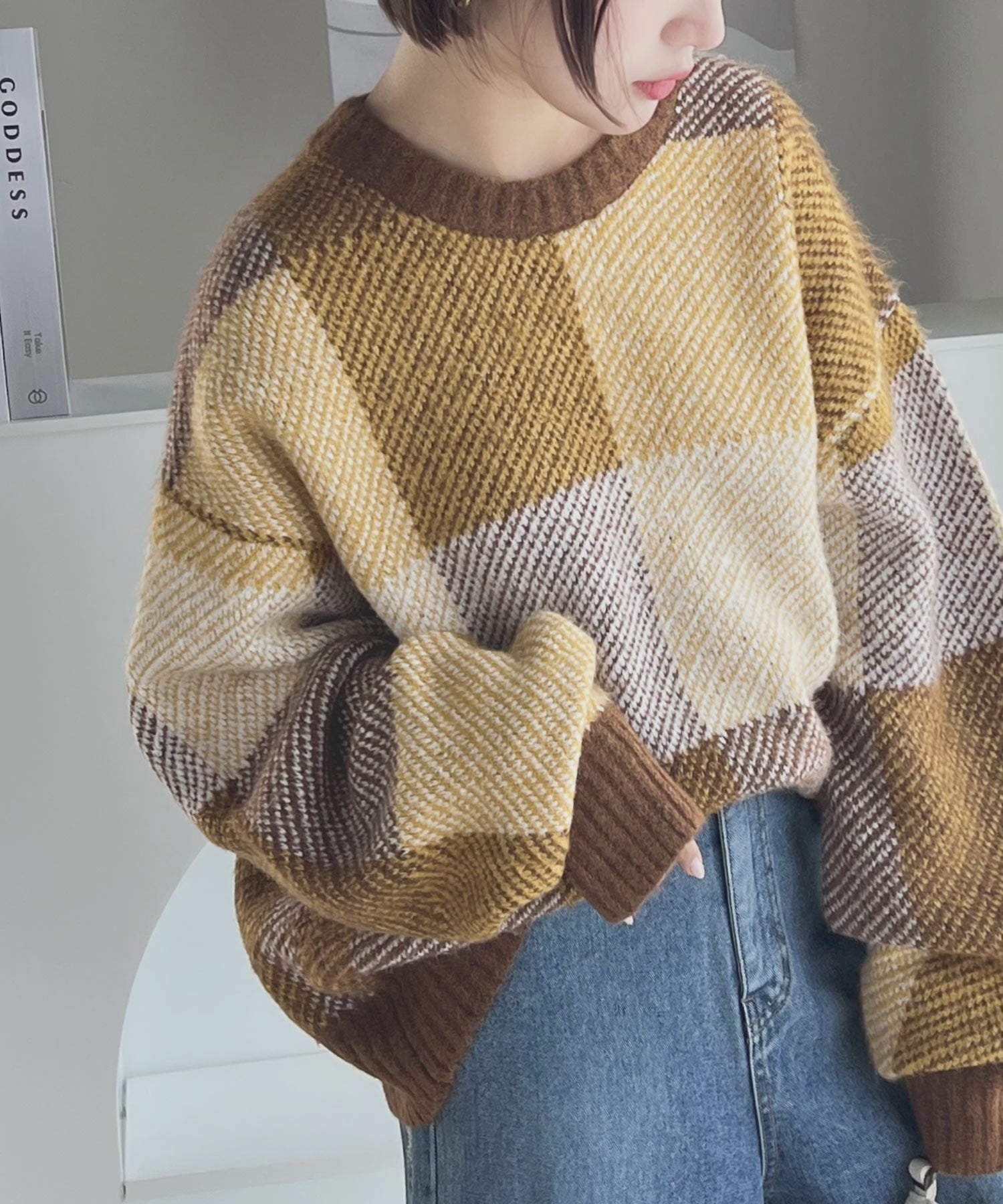 トレンドのチェック柄と立体感のあるジャガード編みで