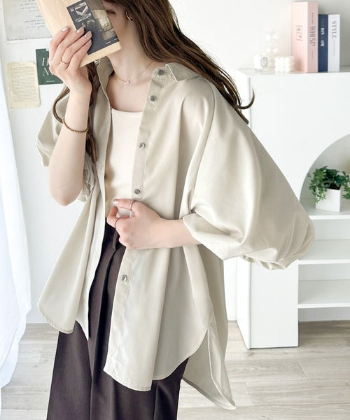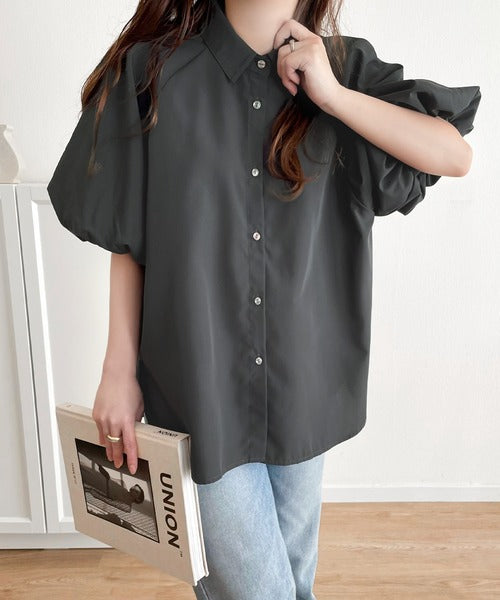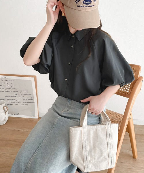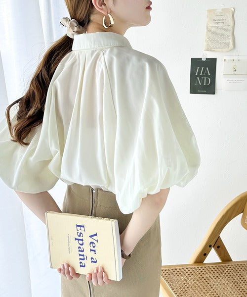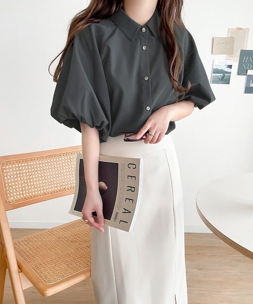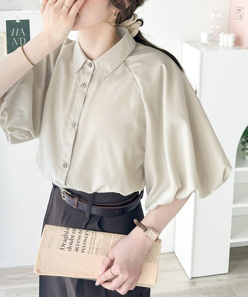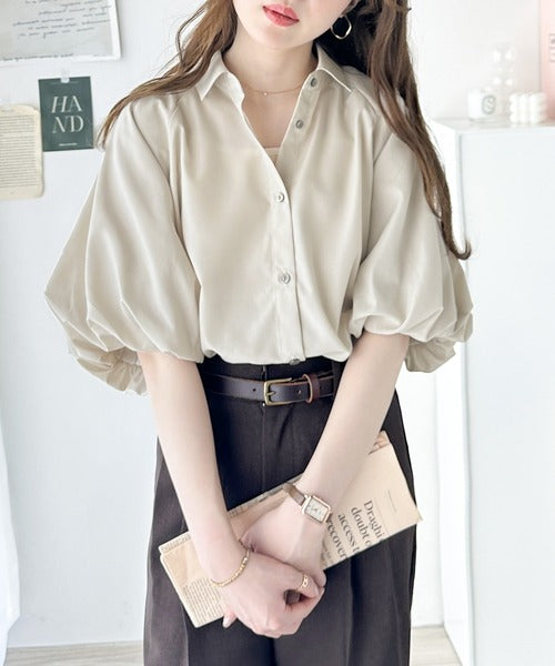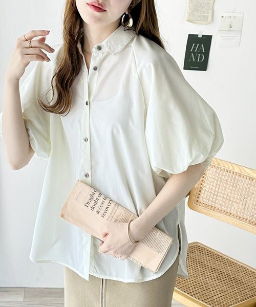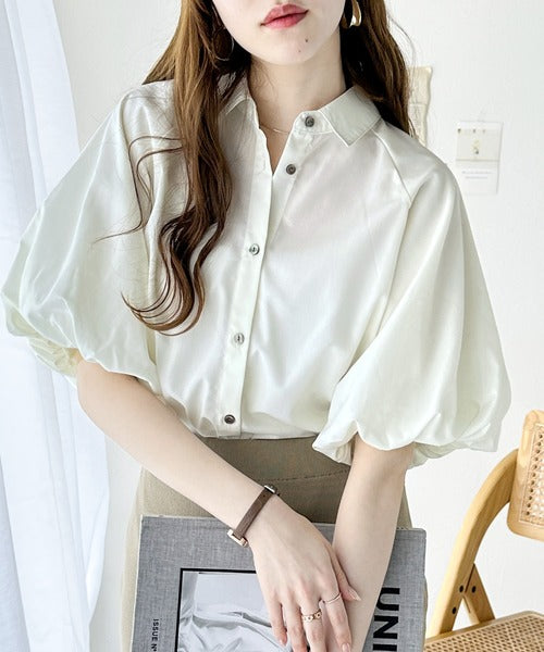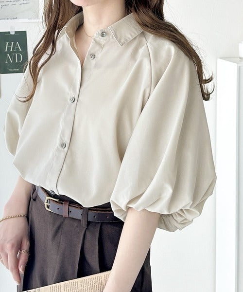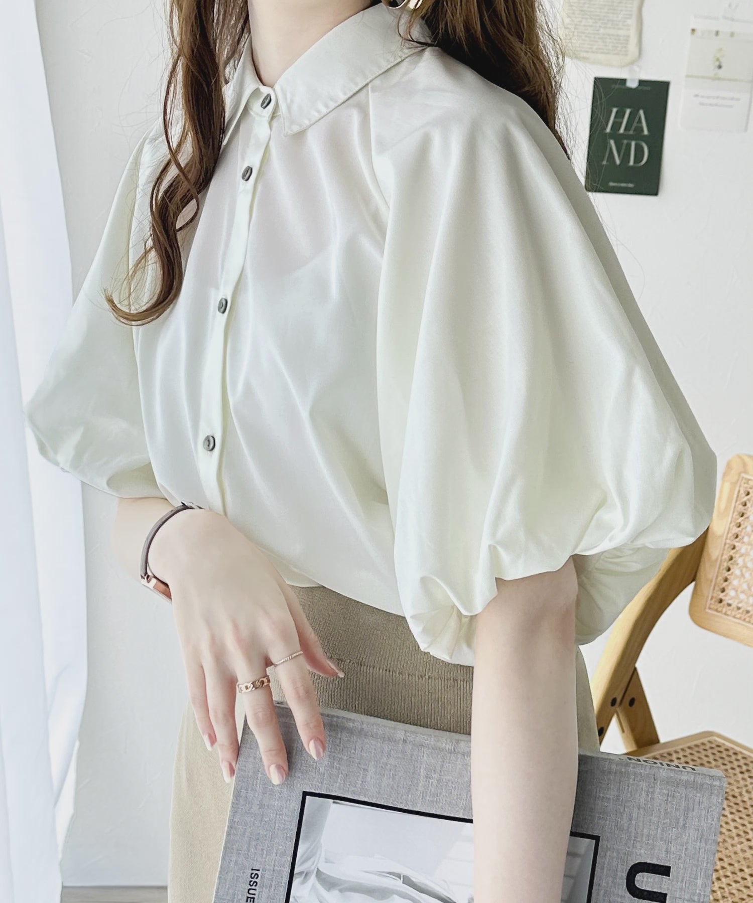 シルエットで差をつける。コットンライクバルーンスリーブシャツブラウス ce1020141