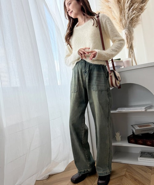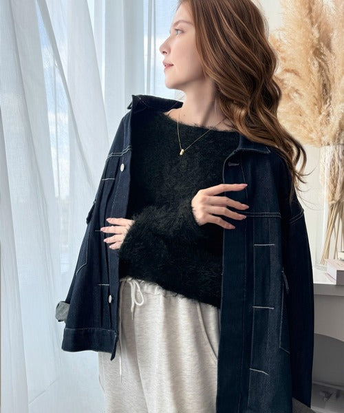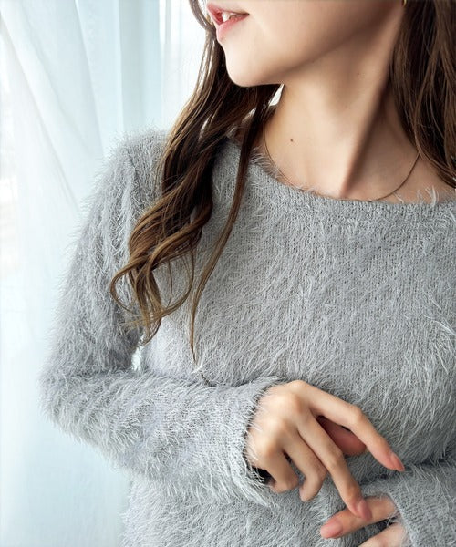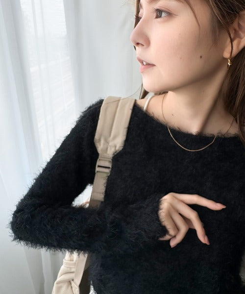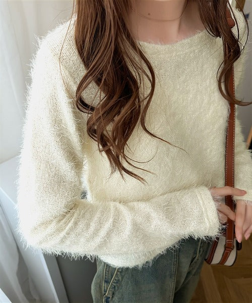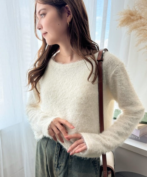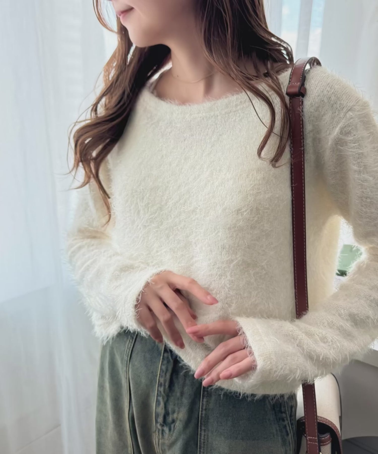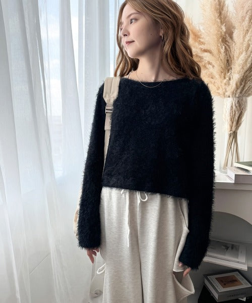 ふわふわシャギーで魅せる。クロップド丈シャギーニットプルオーバー ce1020166