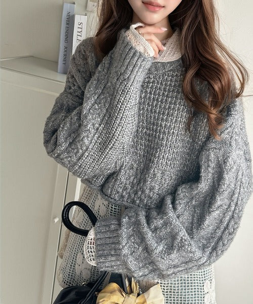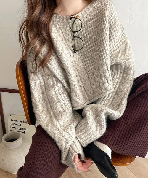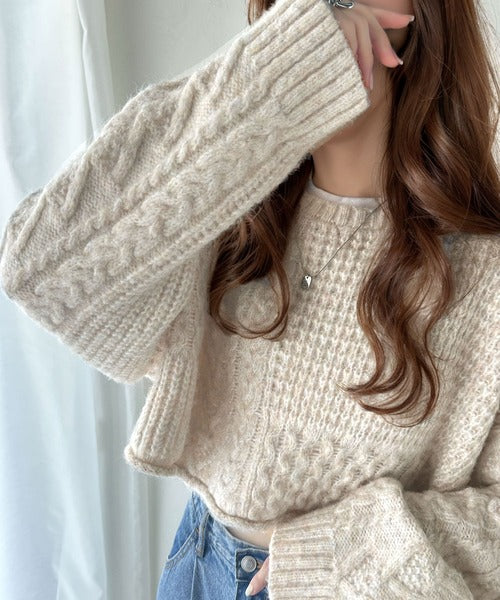 大人可愛い。ミックスカラーパッチワークニットプルオーバー ce1020175