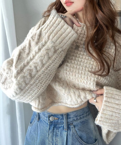 プリーツスカートなどのミニ丈ボトムスと合わせた韓国系ファッションにもハマるトップスです。