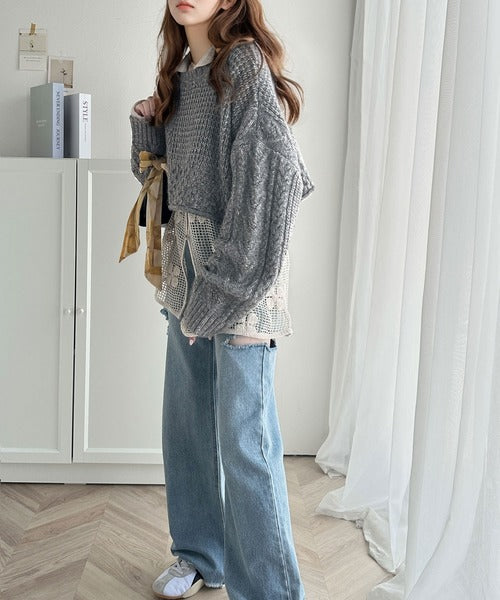 ざっくりとした編地で軽やかな印象で着用いただけます。