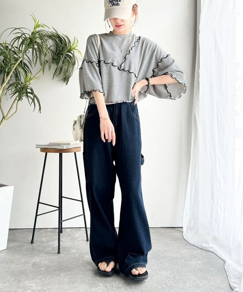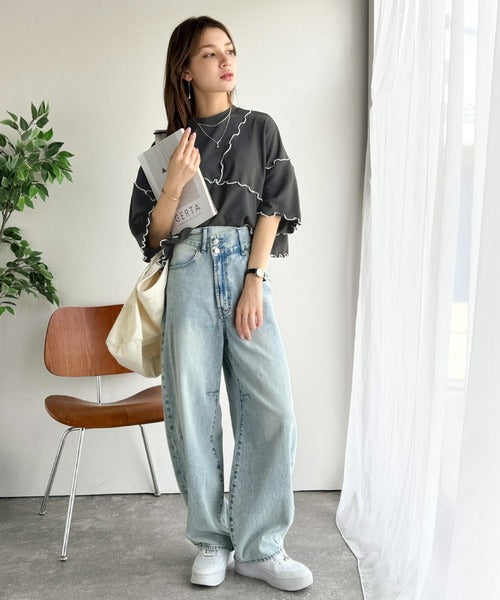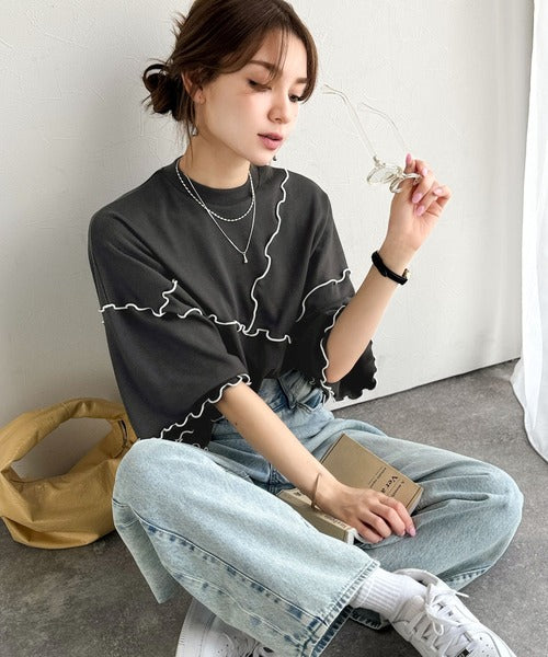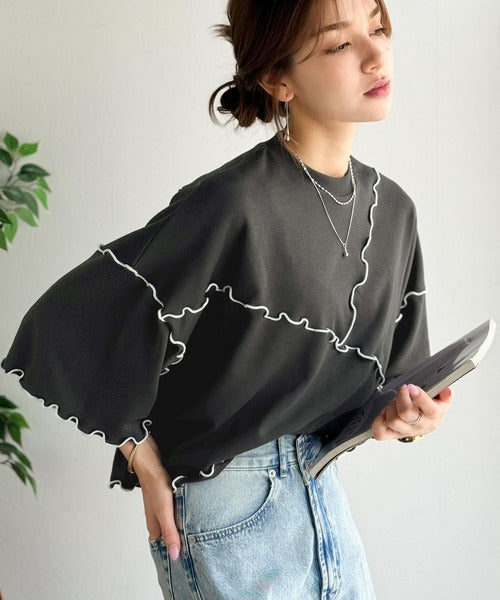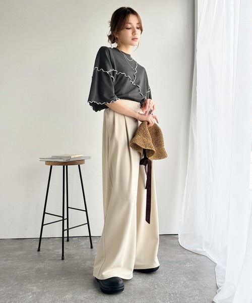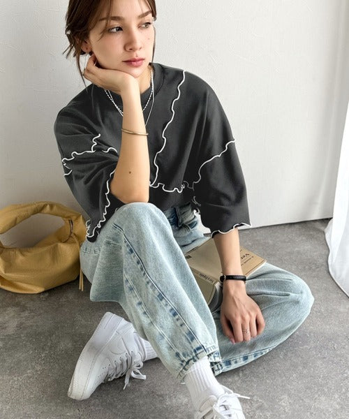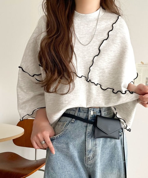 トレンド感もありつつ、ベーシックにも使える万能トップスです。
