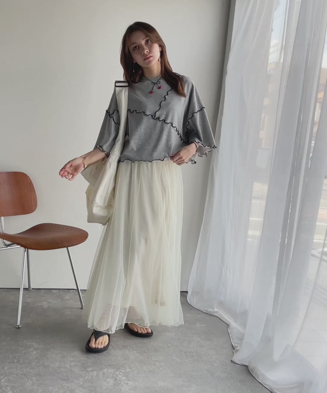 チュールスカートやキャミワンピースを合わせた甘めスタイルまで