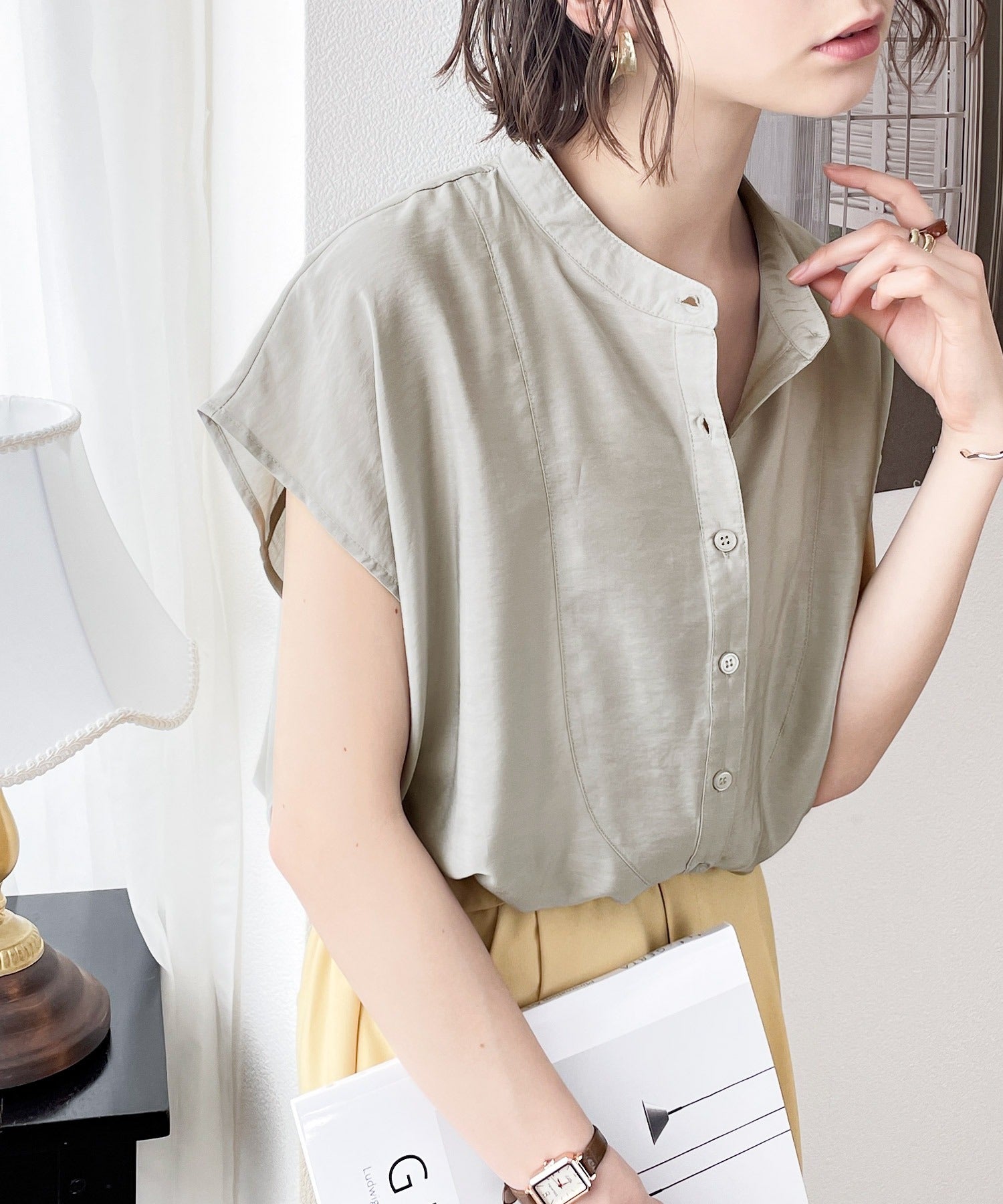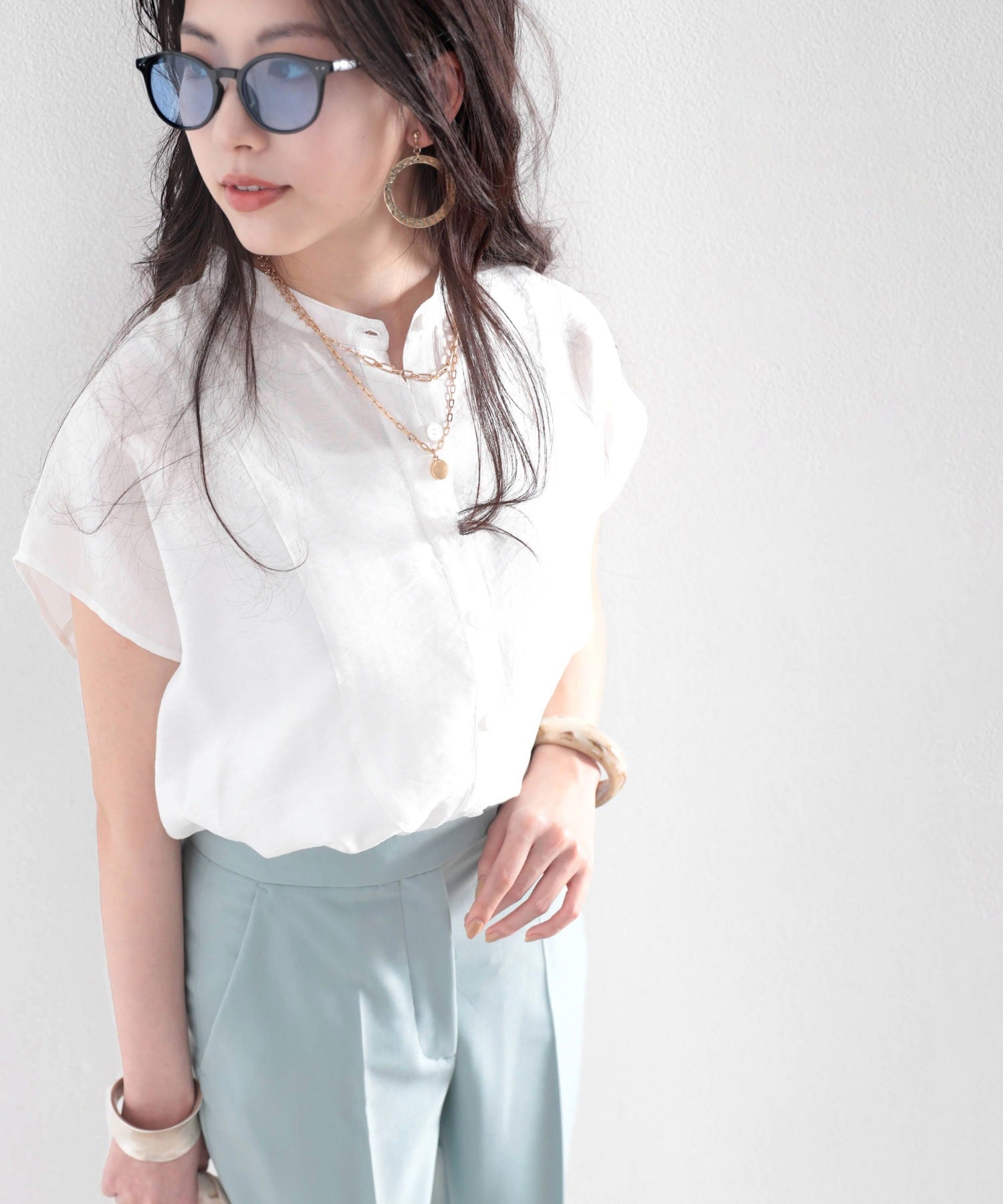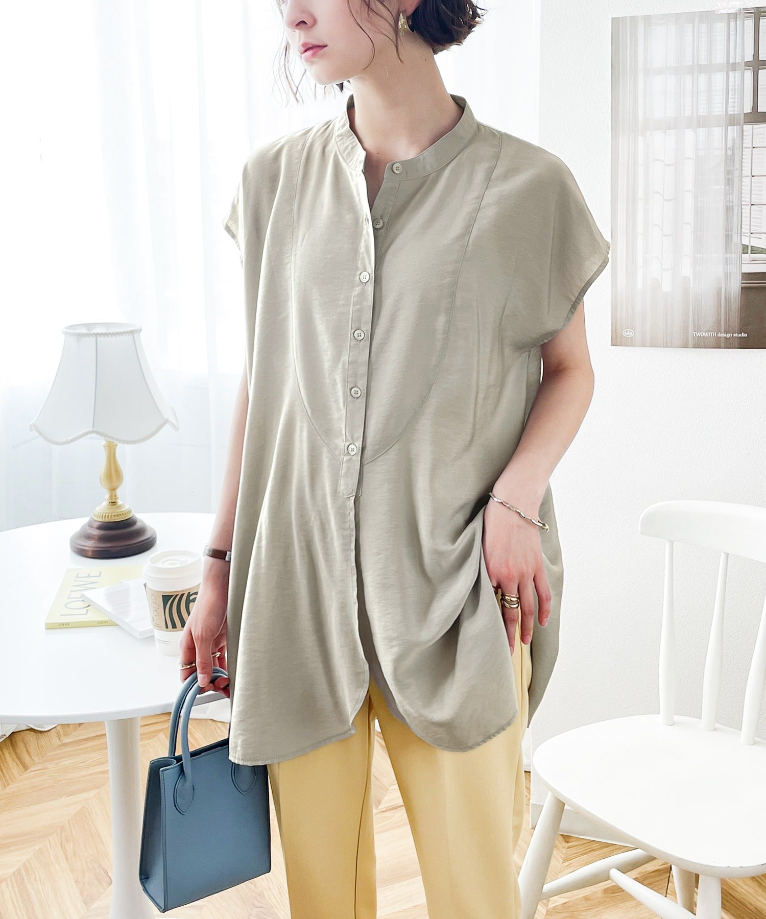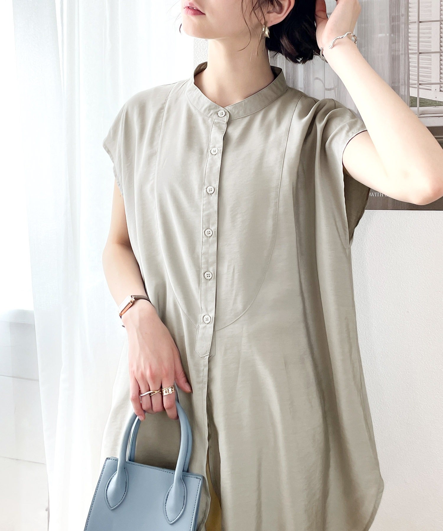 てろん、ふんわり素材。シアーバンドカラーシャツ。 ce1040007