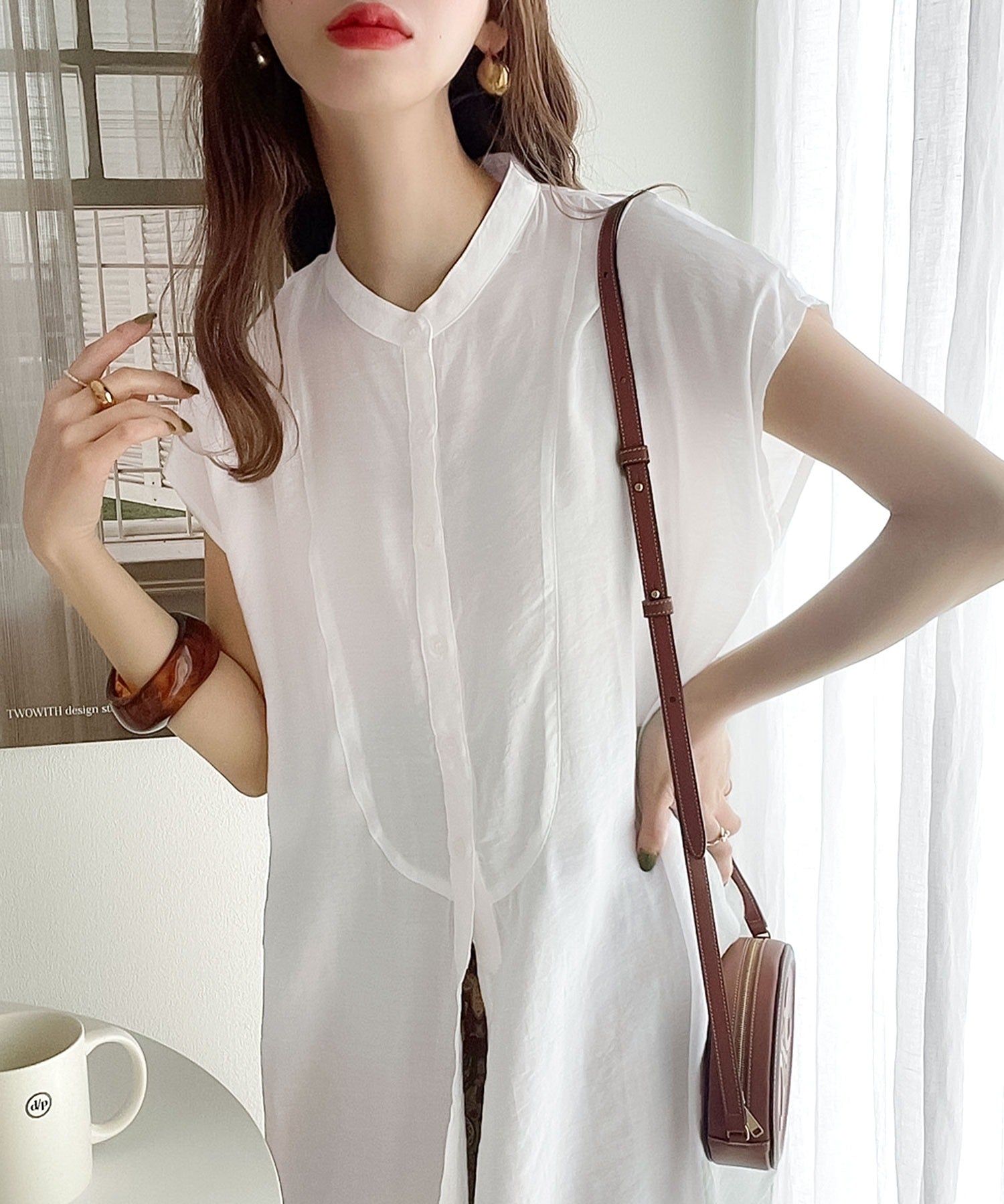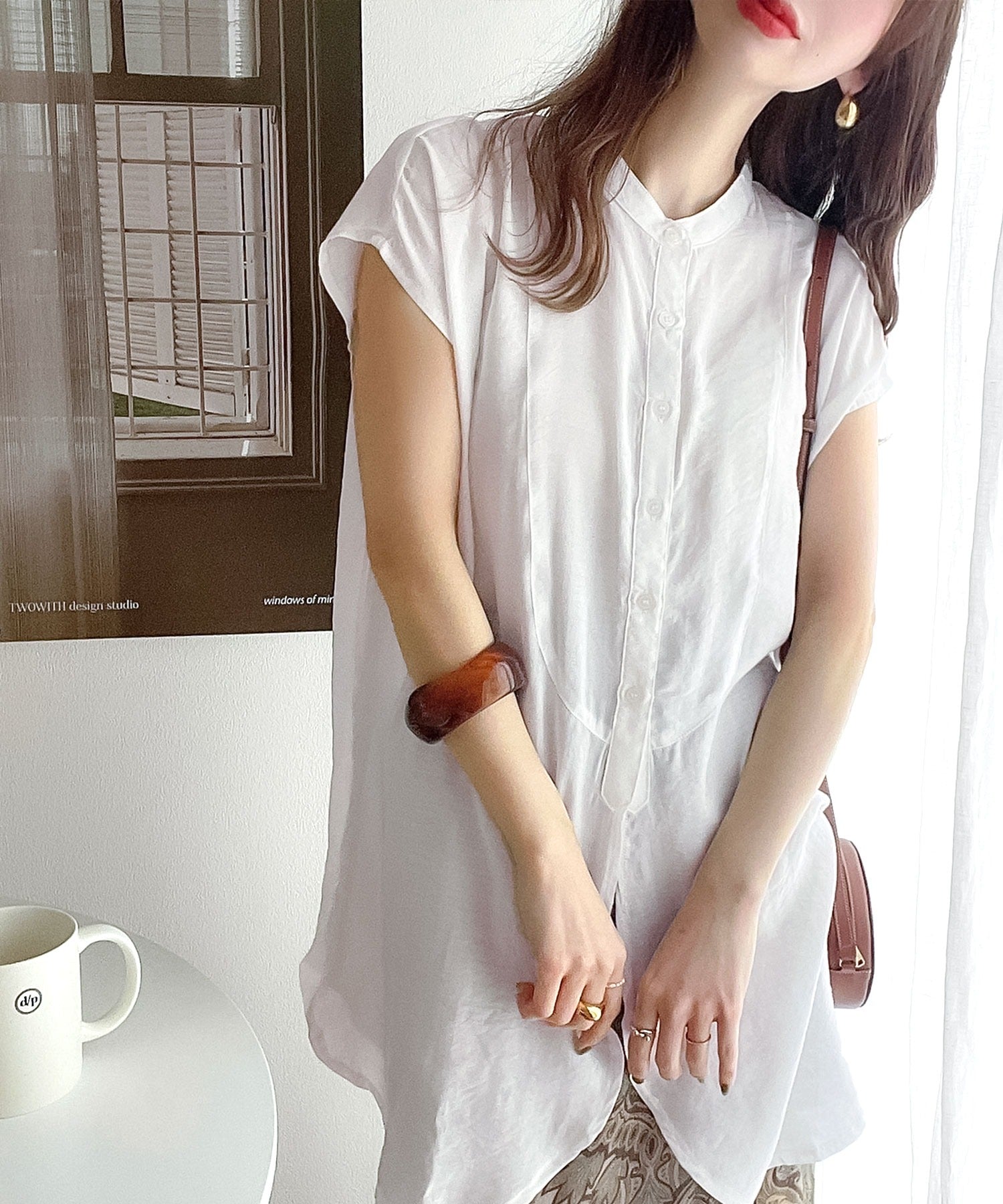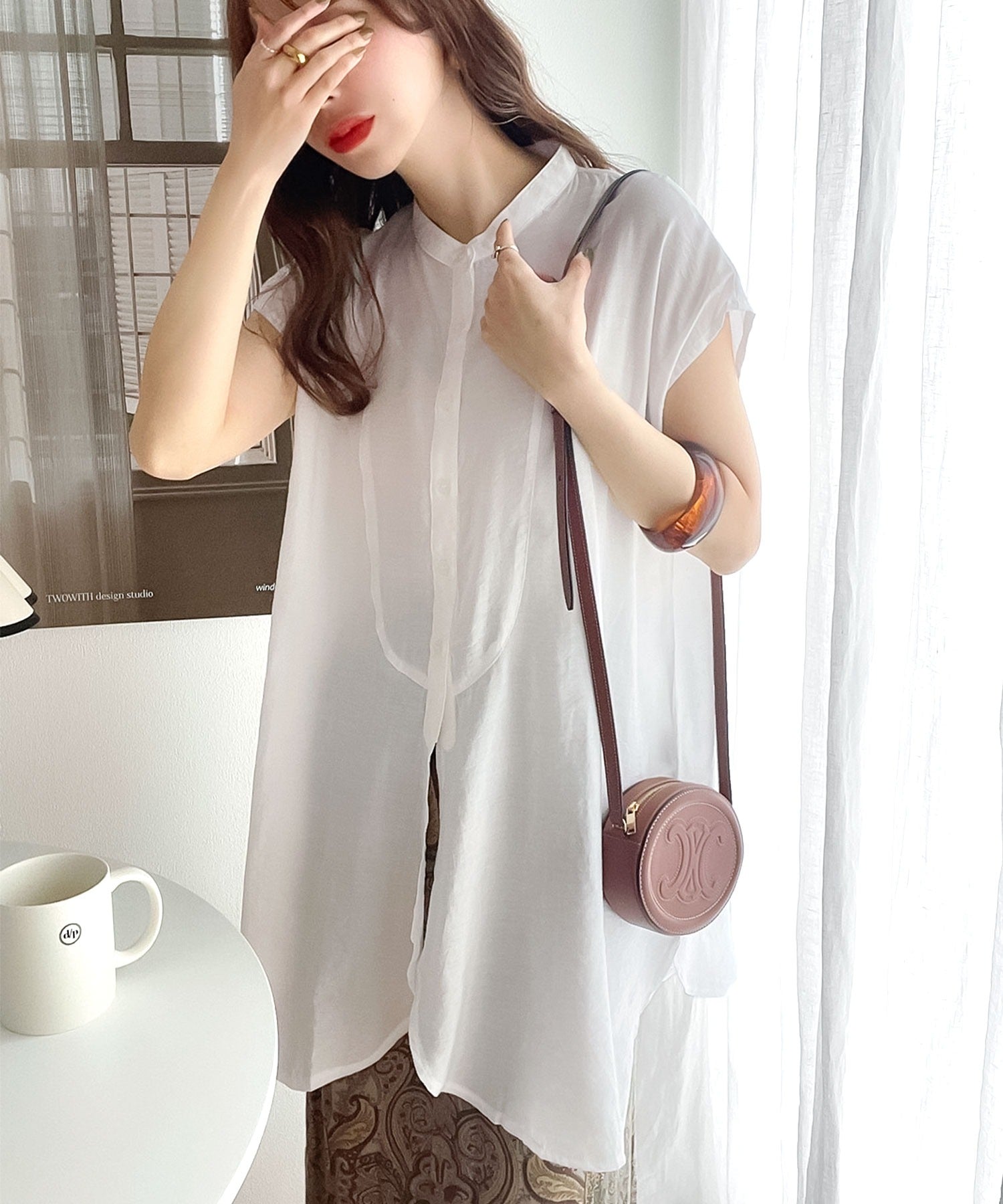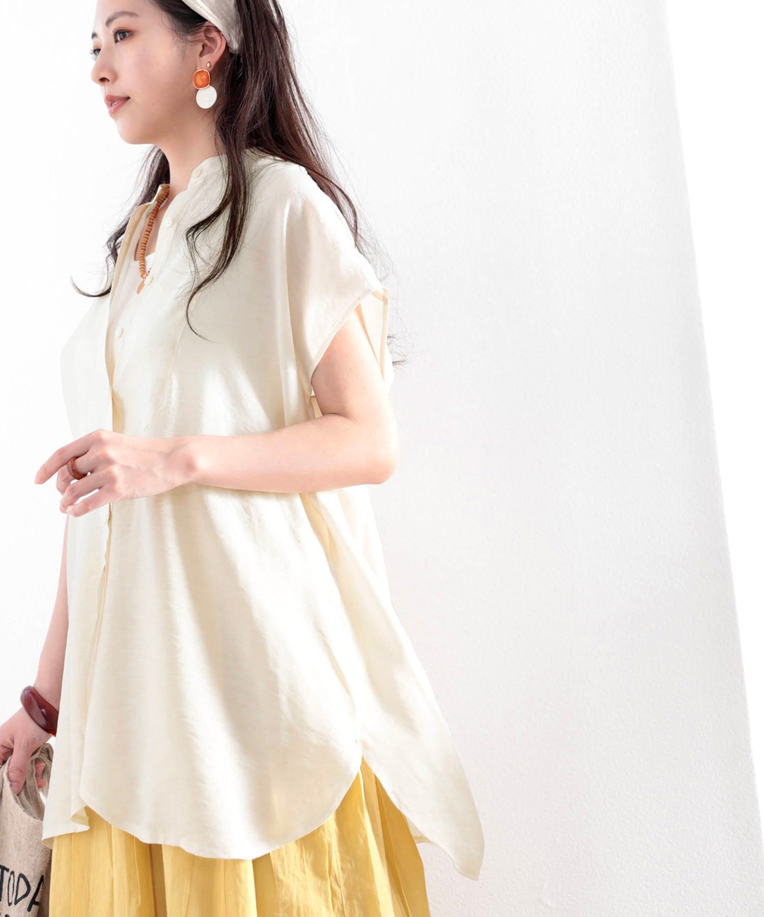 てろん、ふんわり素材。シアーバンドカラーシャツ。 ce1040007
