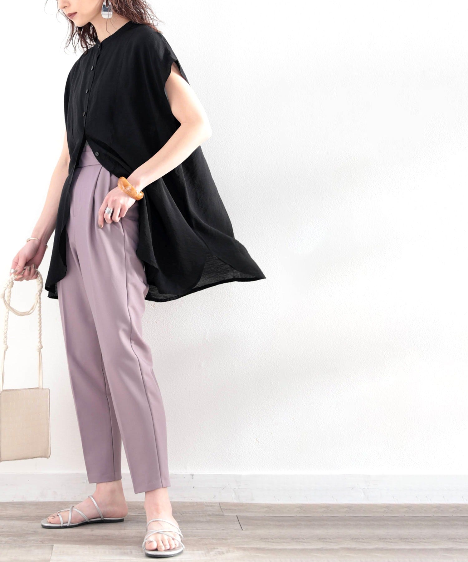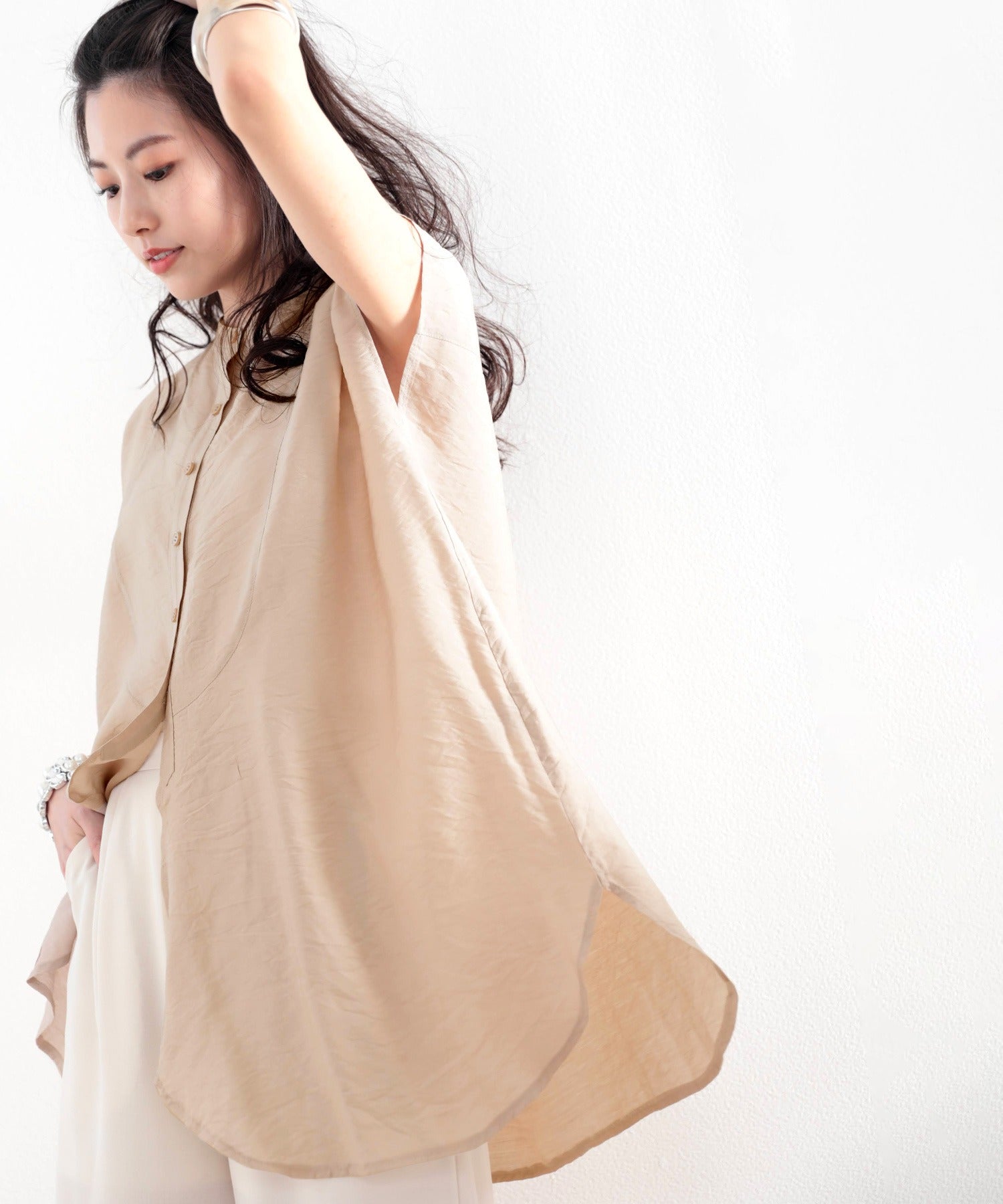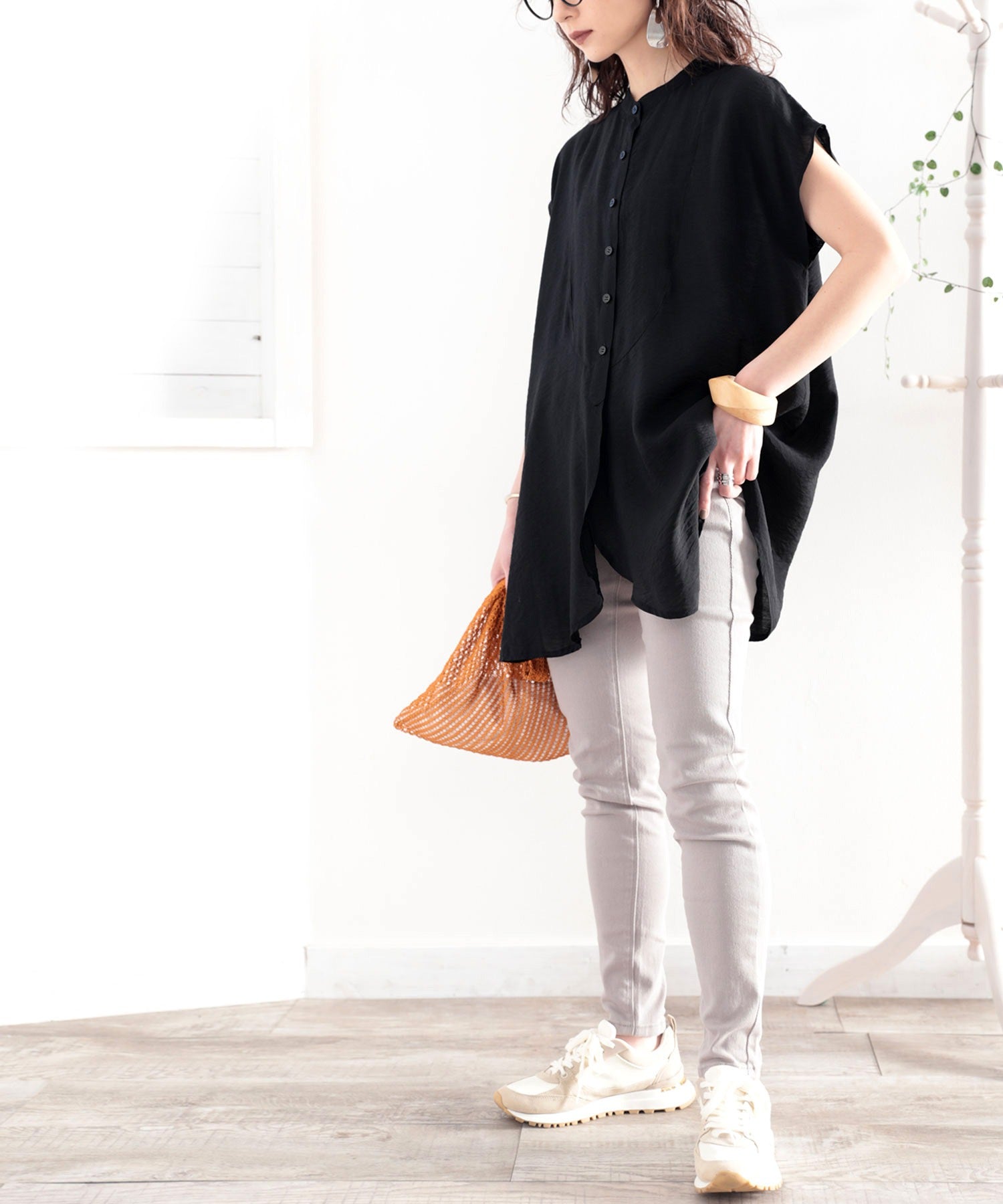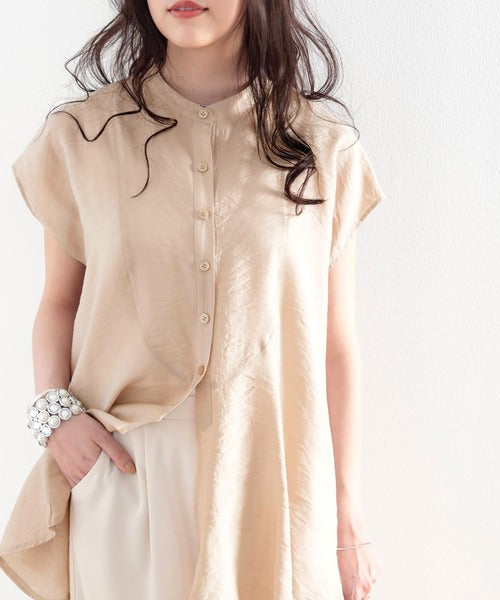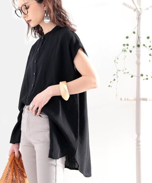 てろん、ふんわり素材。シアーバンドカラーシャツ。 ce1040007