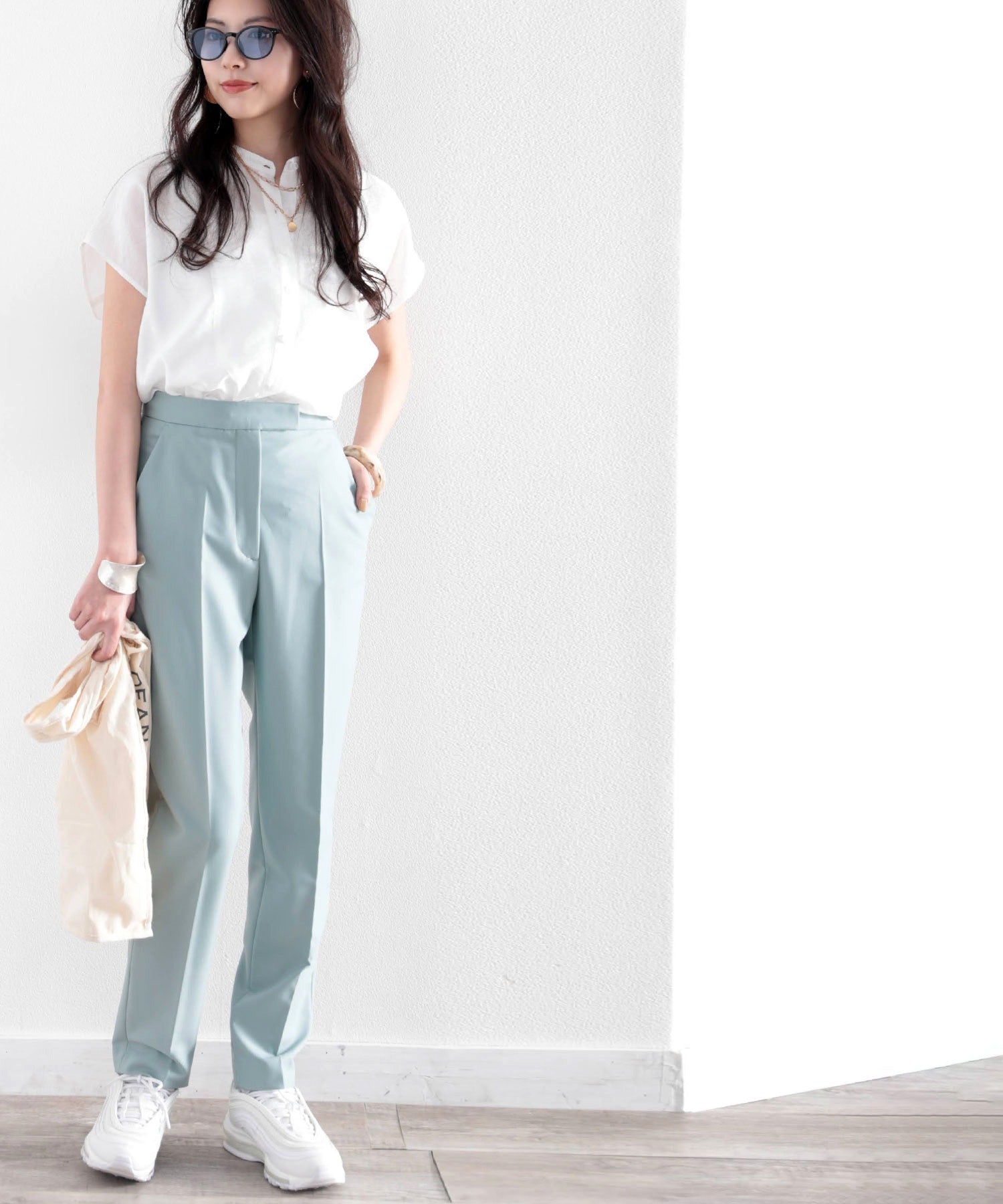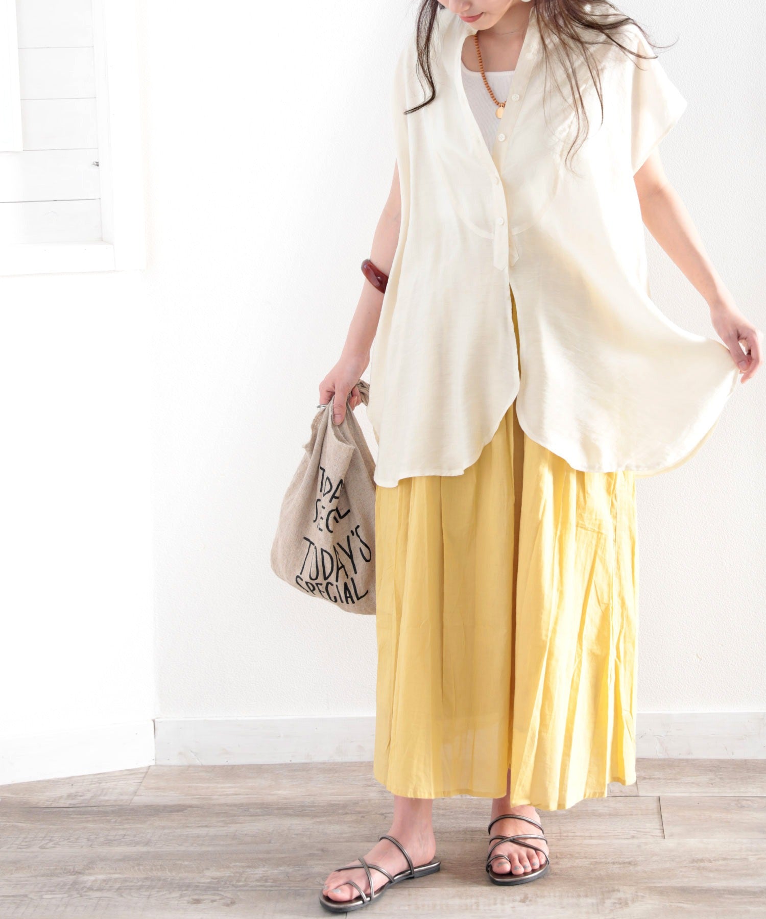 同系色のスカートと合わせればさわやかなコーデにまとめてくれる。
