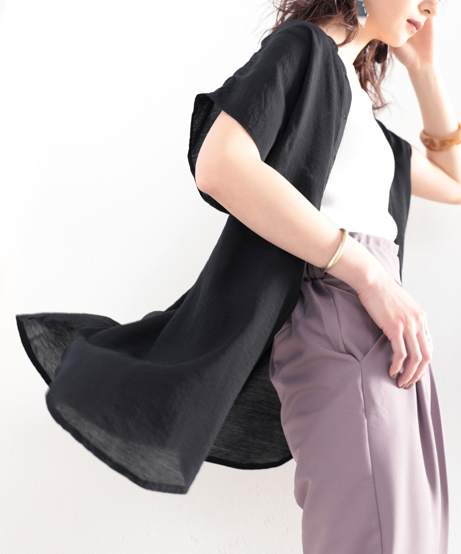 透け感と光沢感あるシアー素材がコーデに「上品さ」をプラス。
