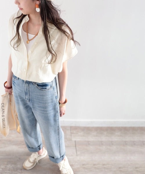程よいしわ加工の入ったエアリーな素材の軽やかなブラウス。