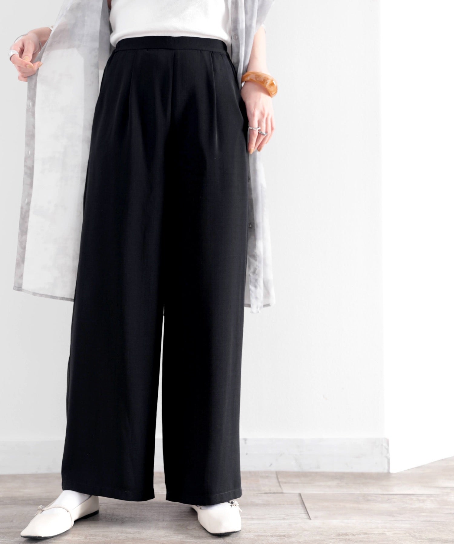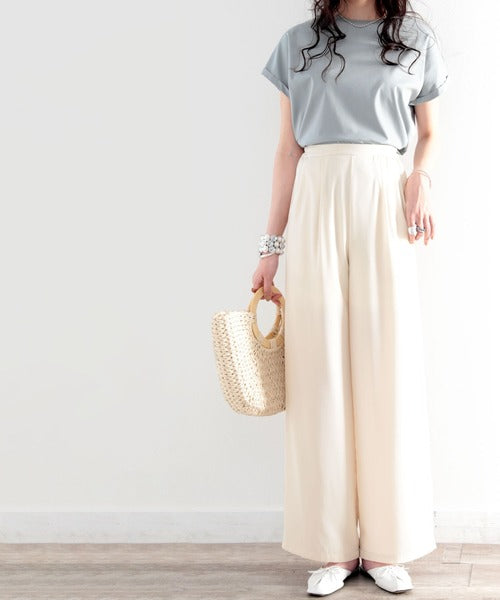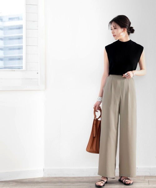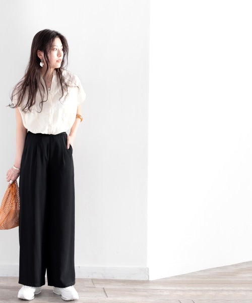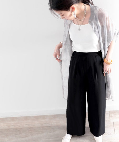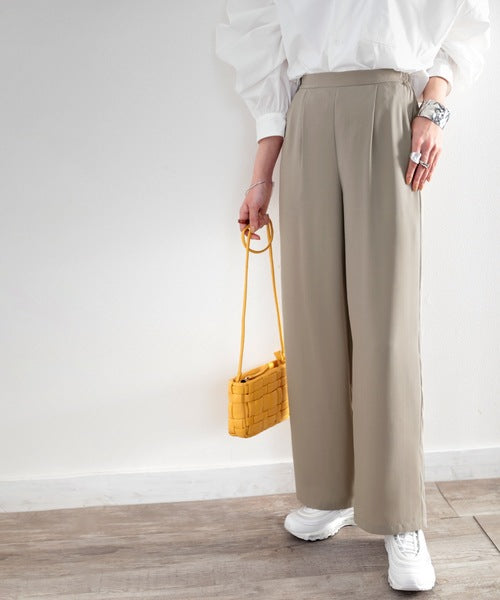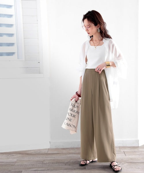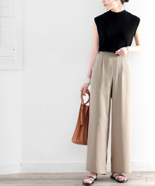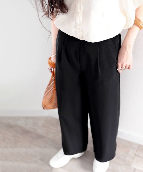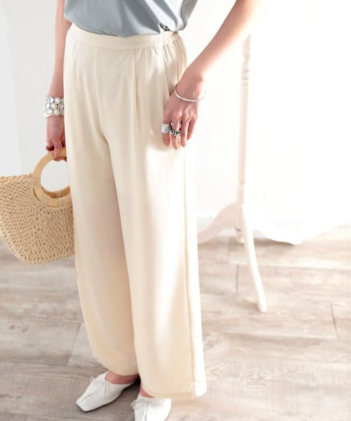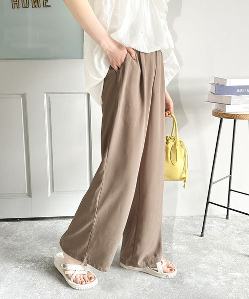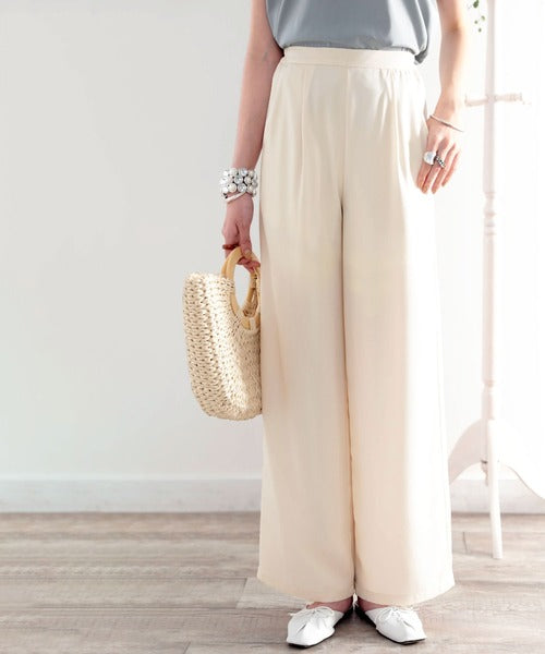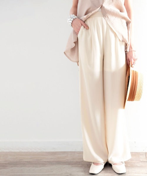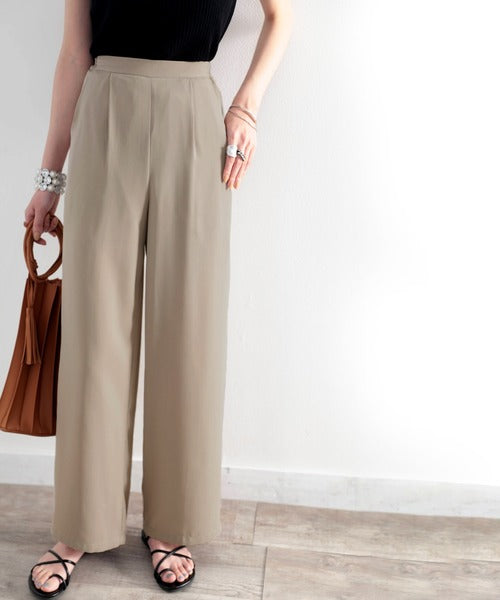 タックで上品に。美シルエット、リネンライクワイドパンツ ce1040010