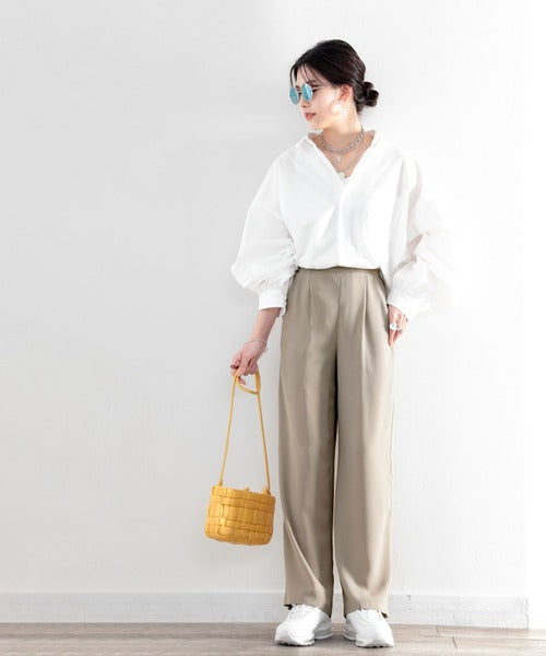 オフィスにも映えるワイドシルエット。