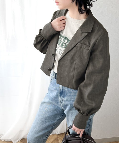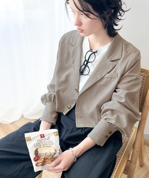 《RIRIYANO×クラシカルエルフコラボ》トレンド先取り!袖口ギャザーショート丈ジャケット(セットアップ可) ce1040016