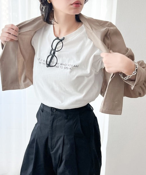 Tシャツと合わせても、落ち感のある素材なので綺麗めな大人のカジュアルコーデに。