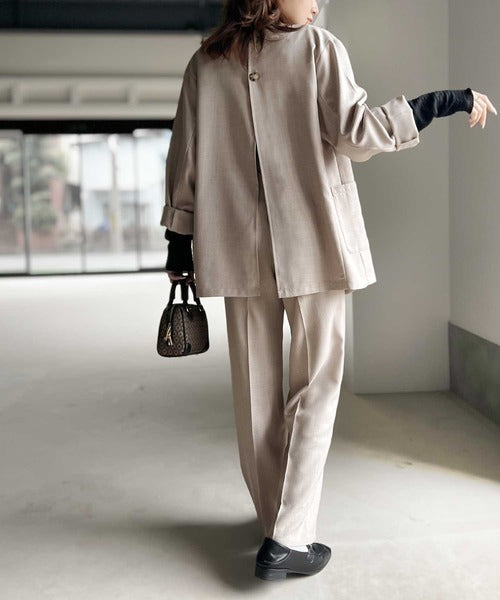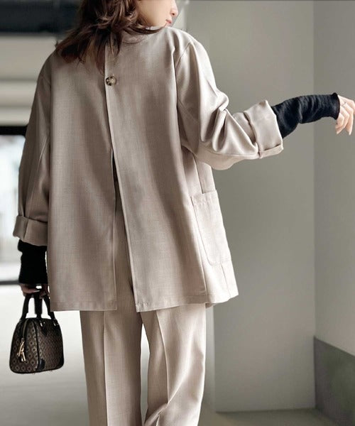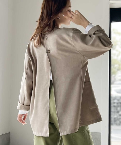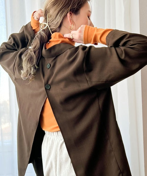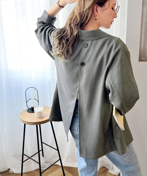 程よいビッグシルエットで後ろの深めに入ったスリットが目を惹くデザインジャケットです。