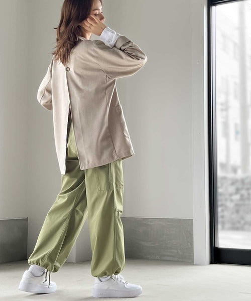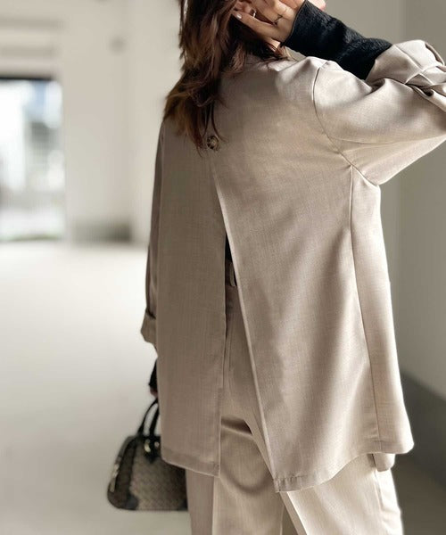 一見メンズライクなデザインながらも、バックスリットが深めで抜け感をプラス。