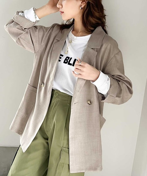 《RIRIYANO×クラシカルエルフコラボ》大人の上級者魅せ。バックスリットダブルボタンジャケット(セットアップ可) ce1040017