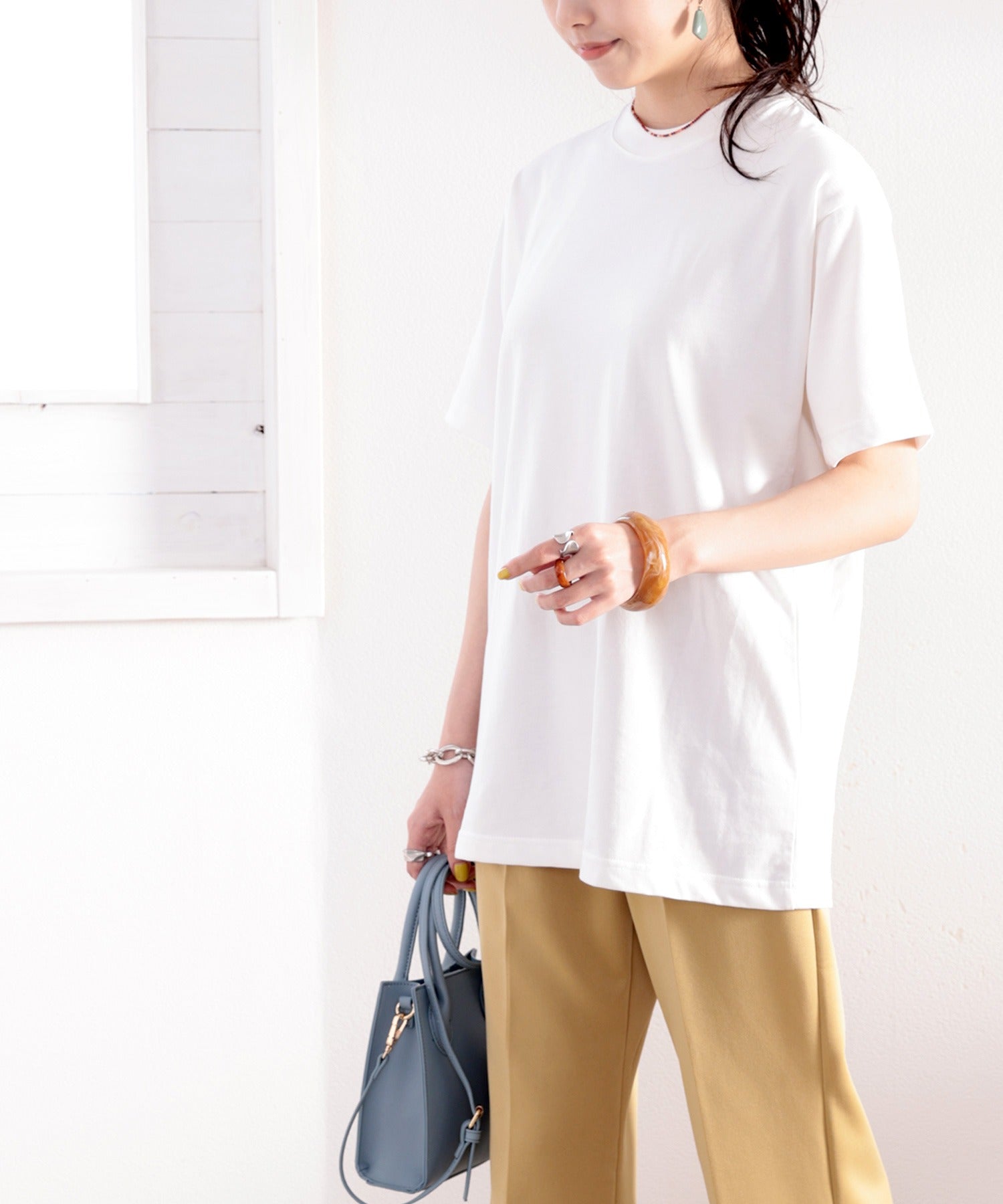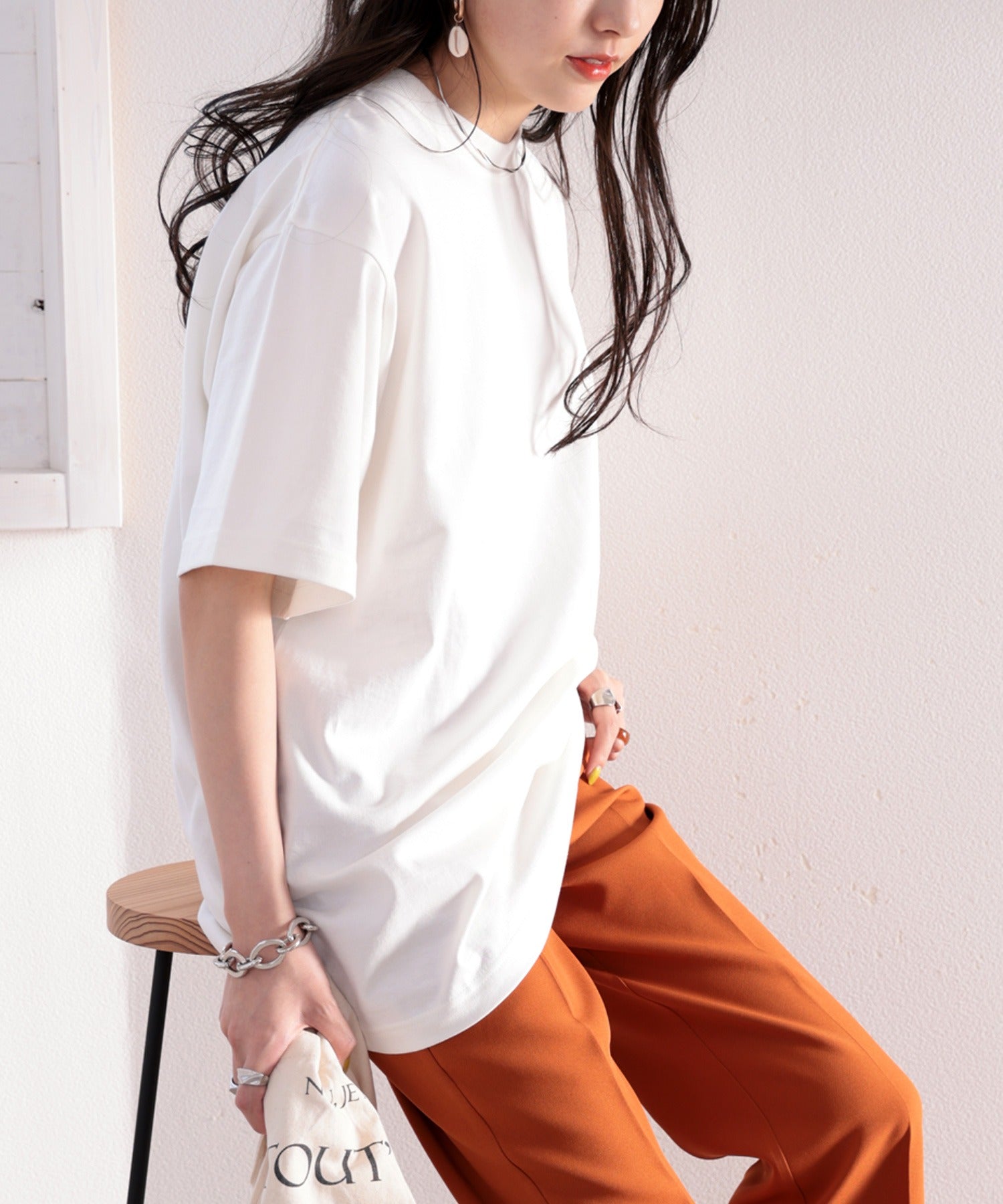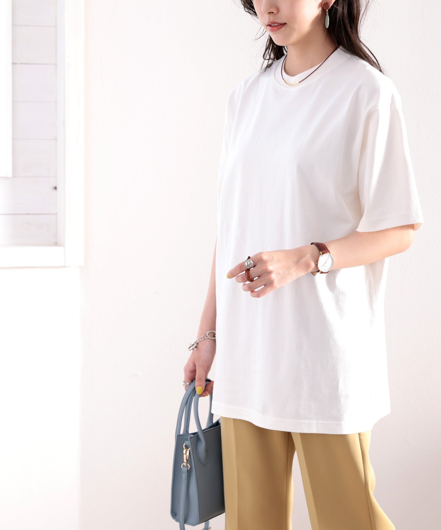 カラーもデザインもベーシックだから毎日着まわせるTシャツ。