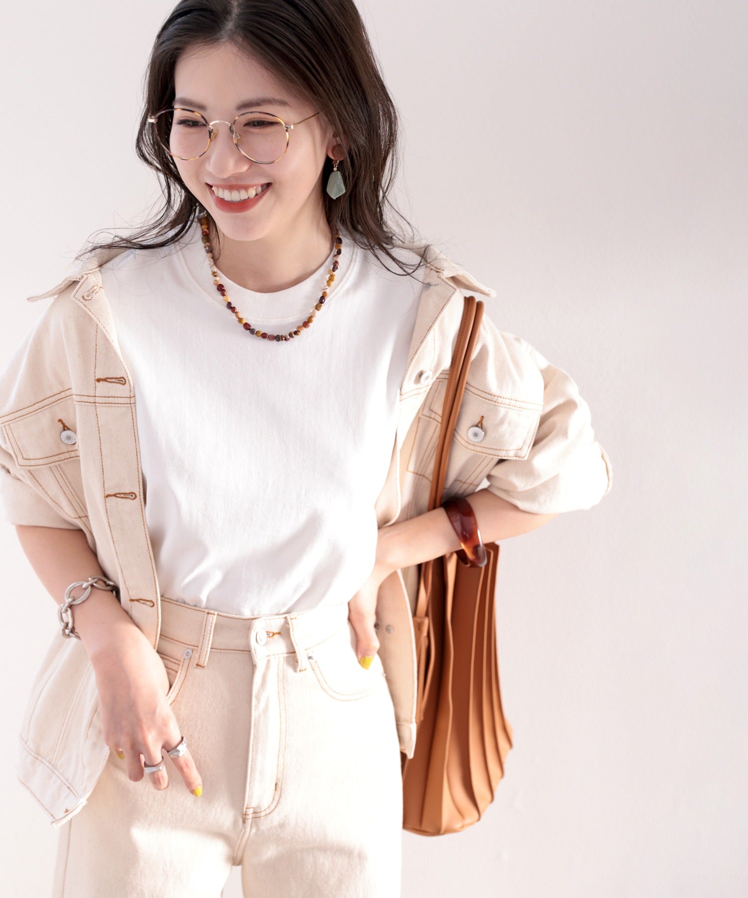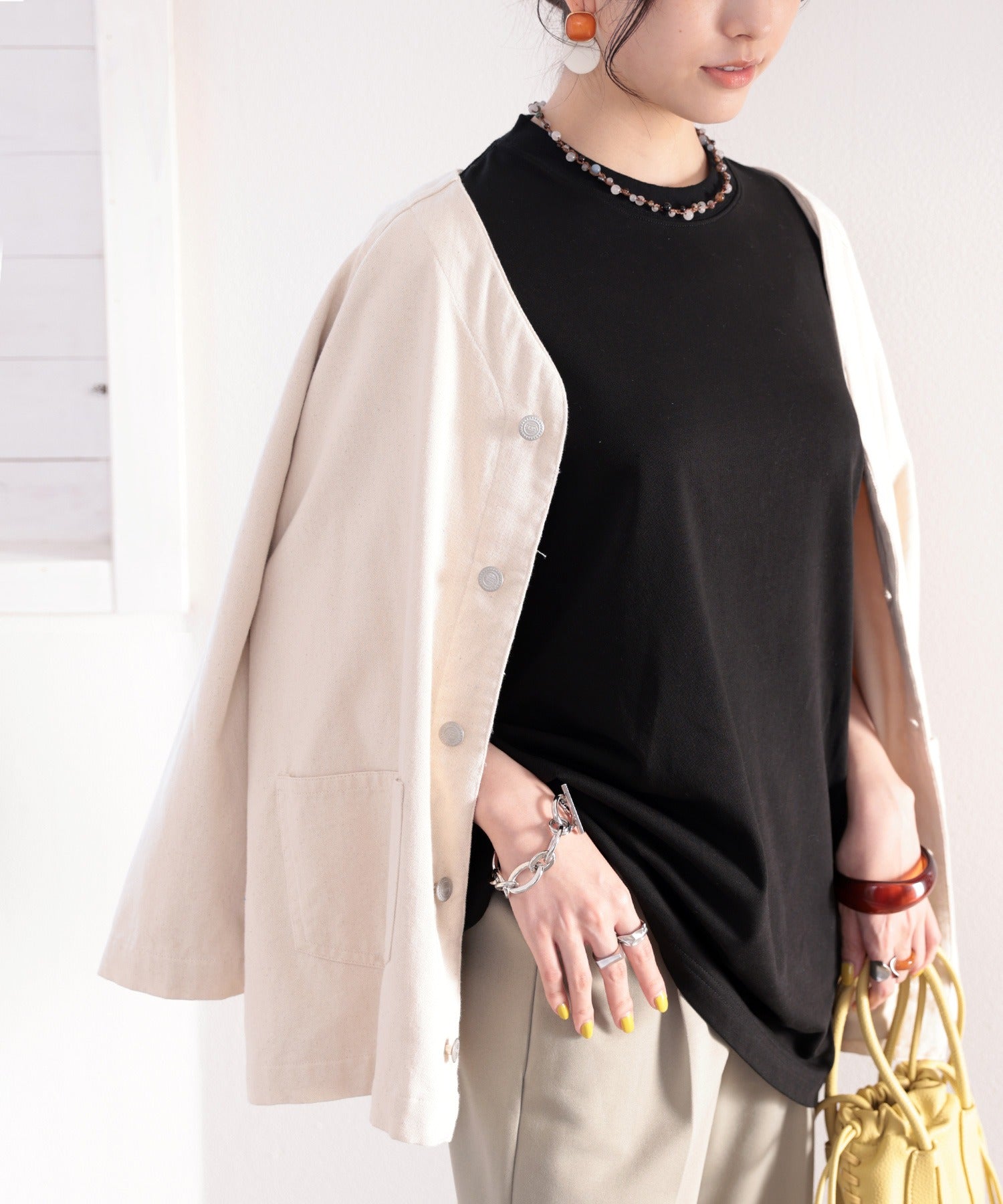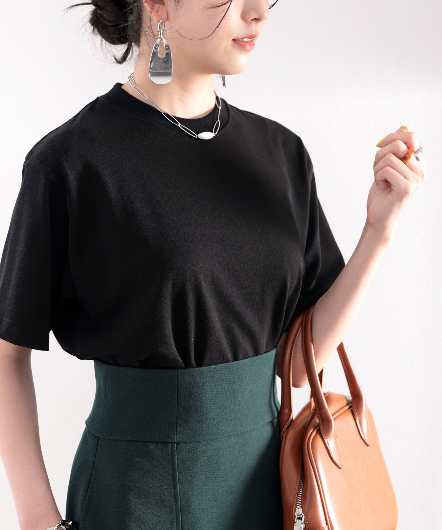 カラーもデザインもベーシックだから毎日着まわせるTシャツ。