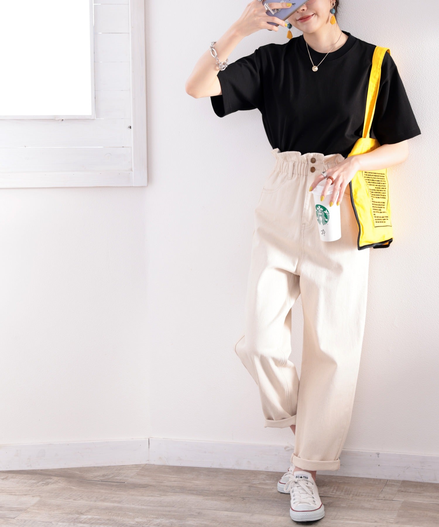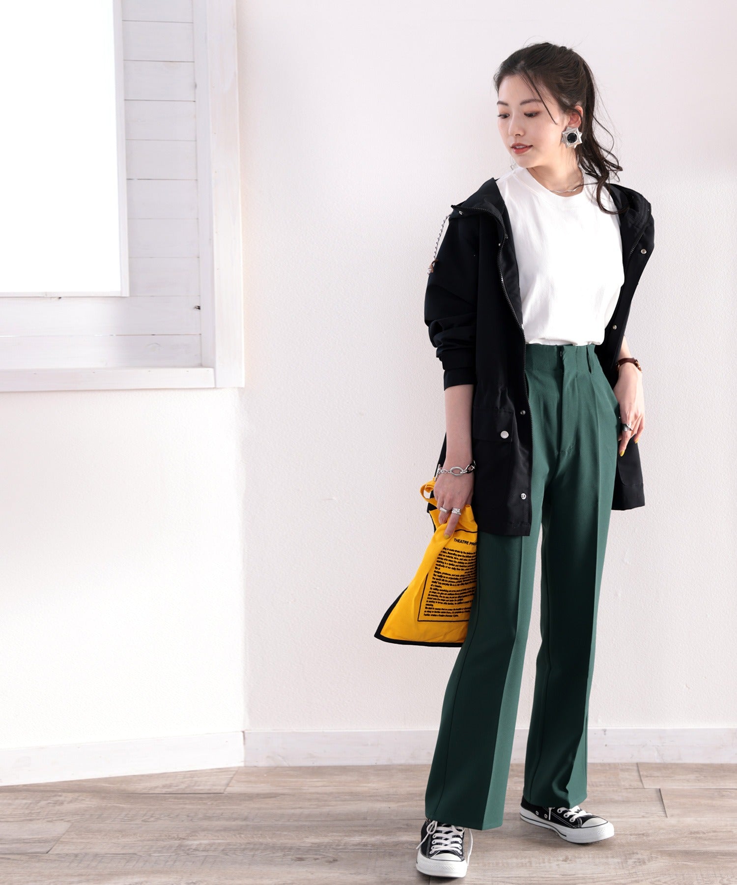 定番の形だから、ワイドパンツやデニム、テーパード、スキニー、