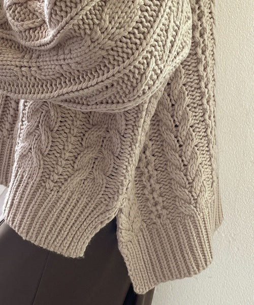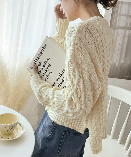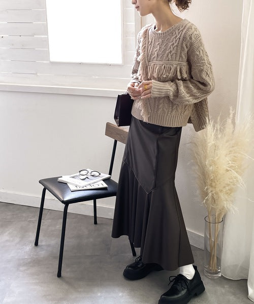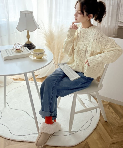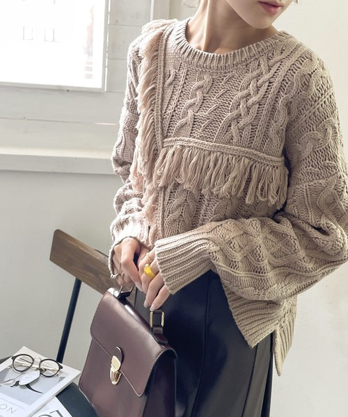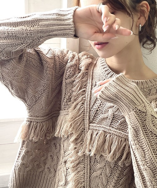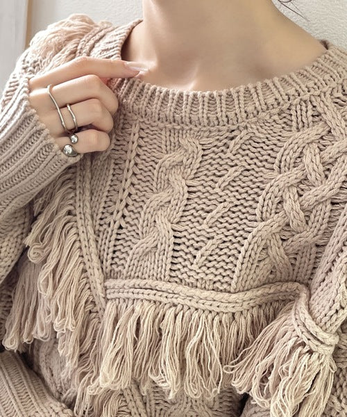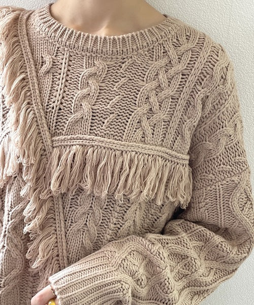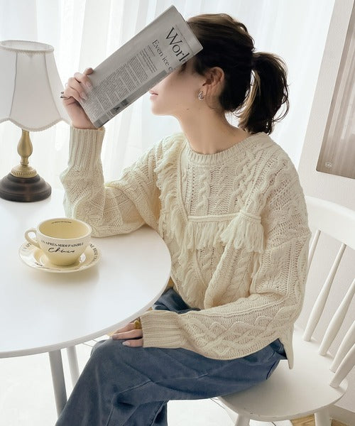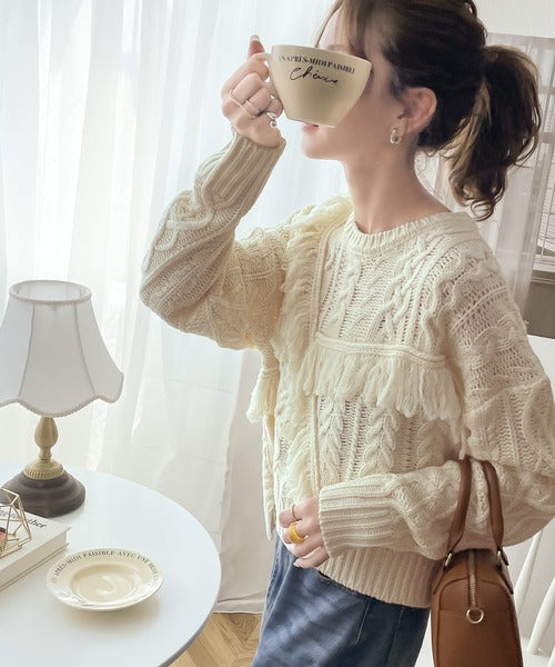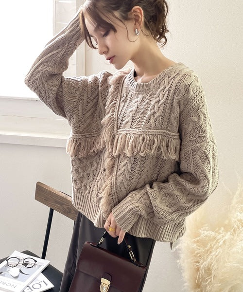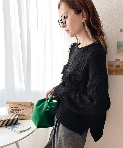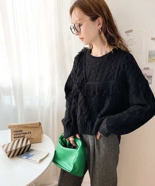 ひと癖プラス。フリンジ&ケーブル編みショート丈ニット ce1050048