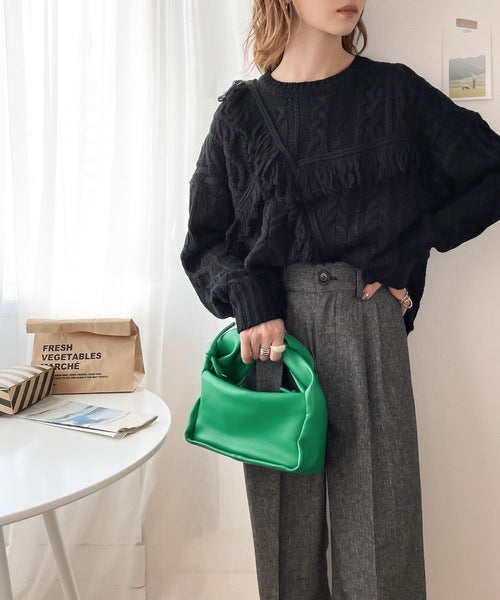 大人可愛いケーブル柄とフリンジがアクセント。
