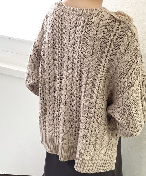 表情豊かなケーブル柄を引き立てる