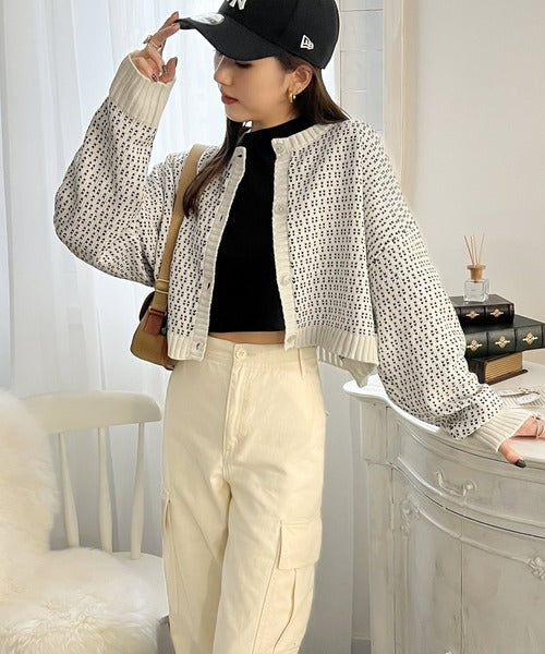 装いを華やかに。2wayジャガードショート丈ニットカーディガン ce1050064