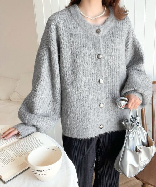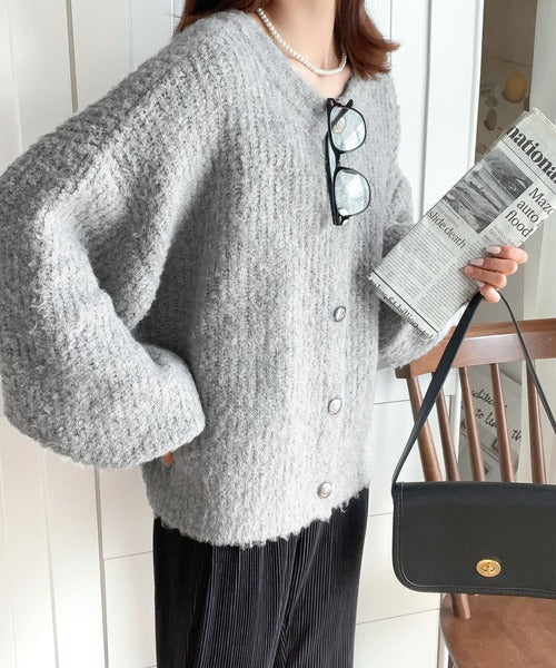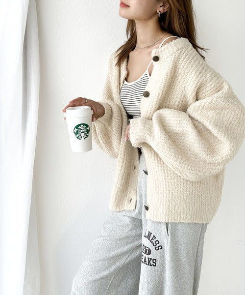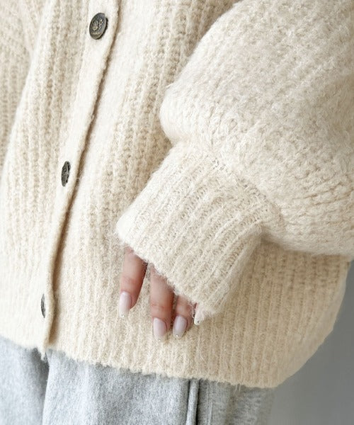 大きめの編み地とふわふわの糸がリラックス感を漂わせるカーディガン。