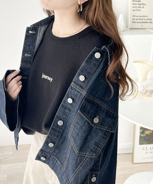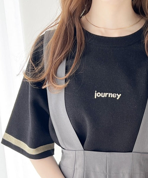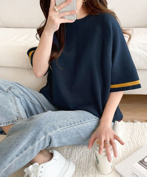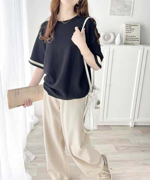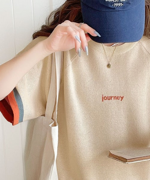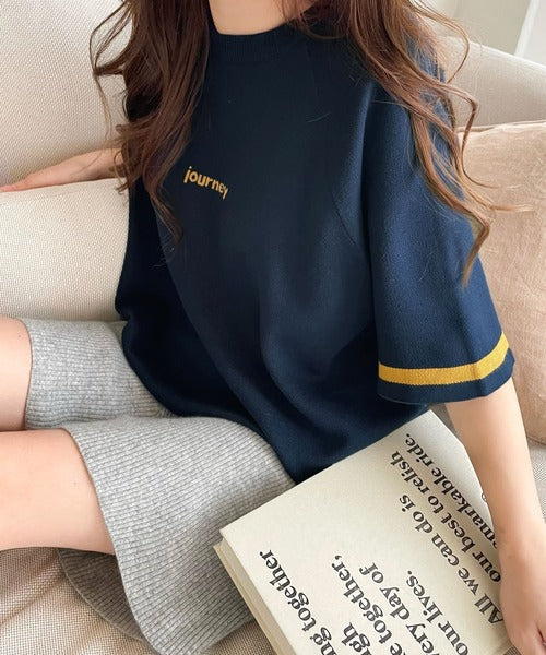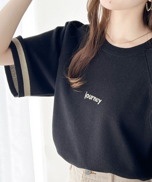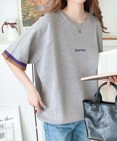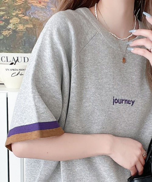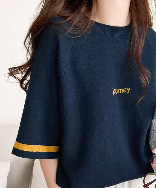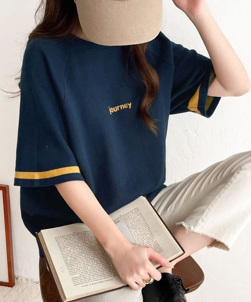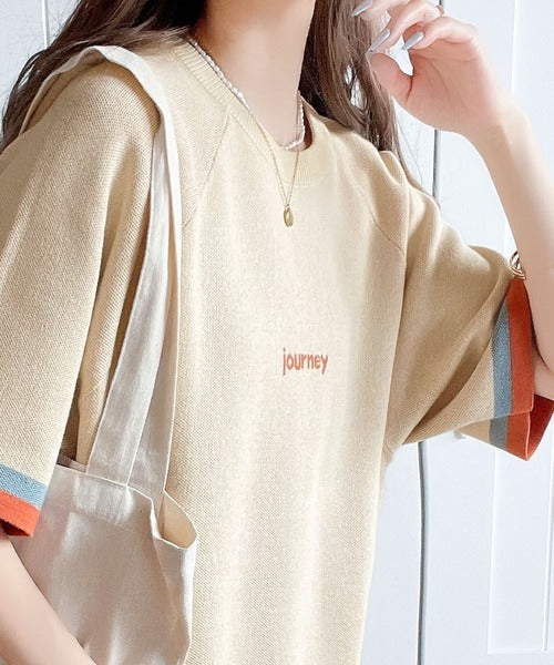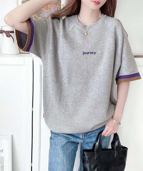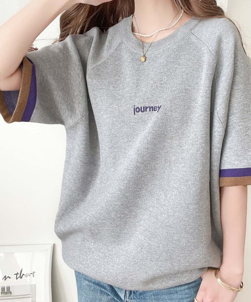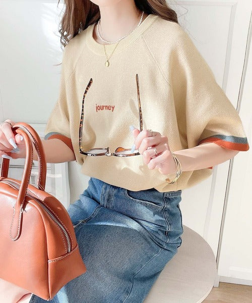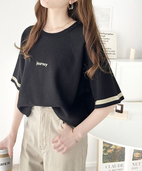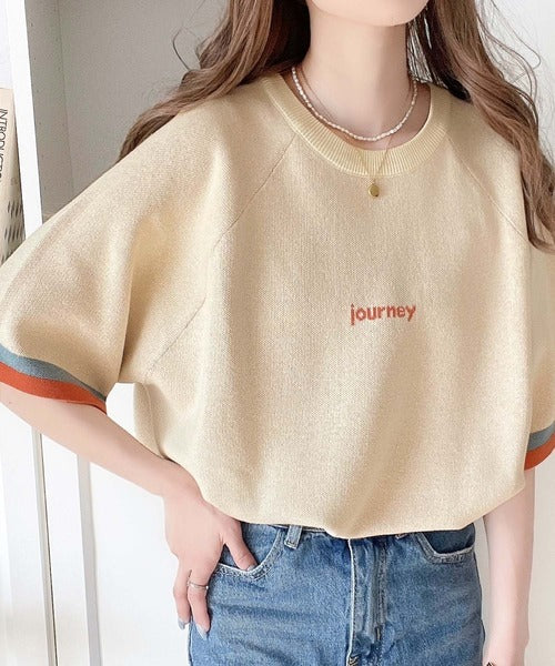 配色で印象UP。前後2way袖ライン半袖ラグランロゴニット ce1050135